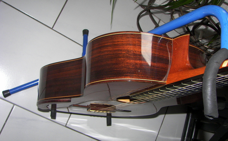 Sie besitzt wie ihr auf den original Fotos sehen könnt zwei statische Golpe, (transparenter Pickgard) als Decken-bzw. Schlagschutz.