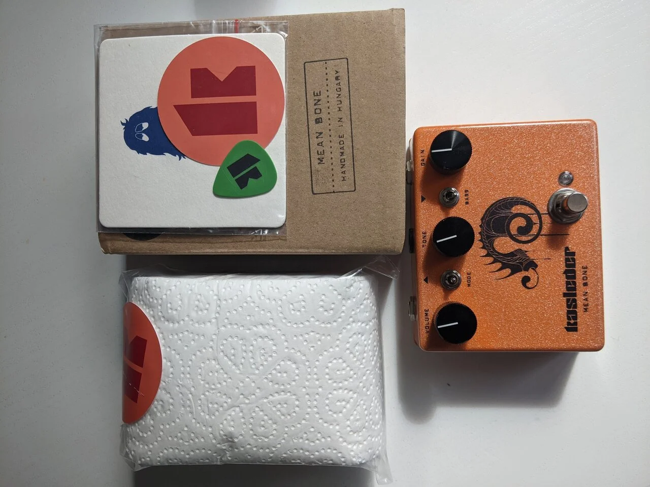 Overdrive/Distortion aus Ungarn, ebenfalls sehr rauscharm und durch die die beiden Kippschalter (links: Zerrstruktur, rechts: Bassanteile) flexibel und anpassbar. Ebenfalls so gut wie neu.