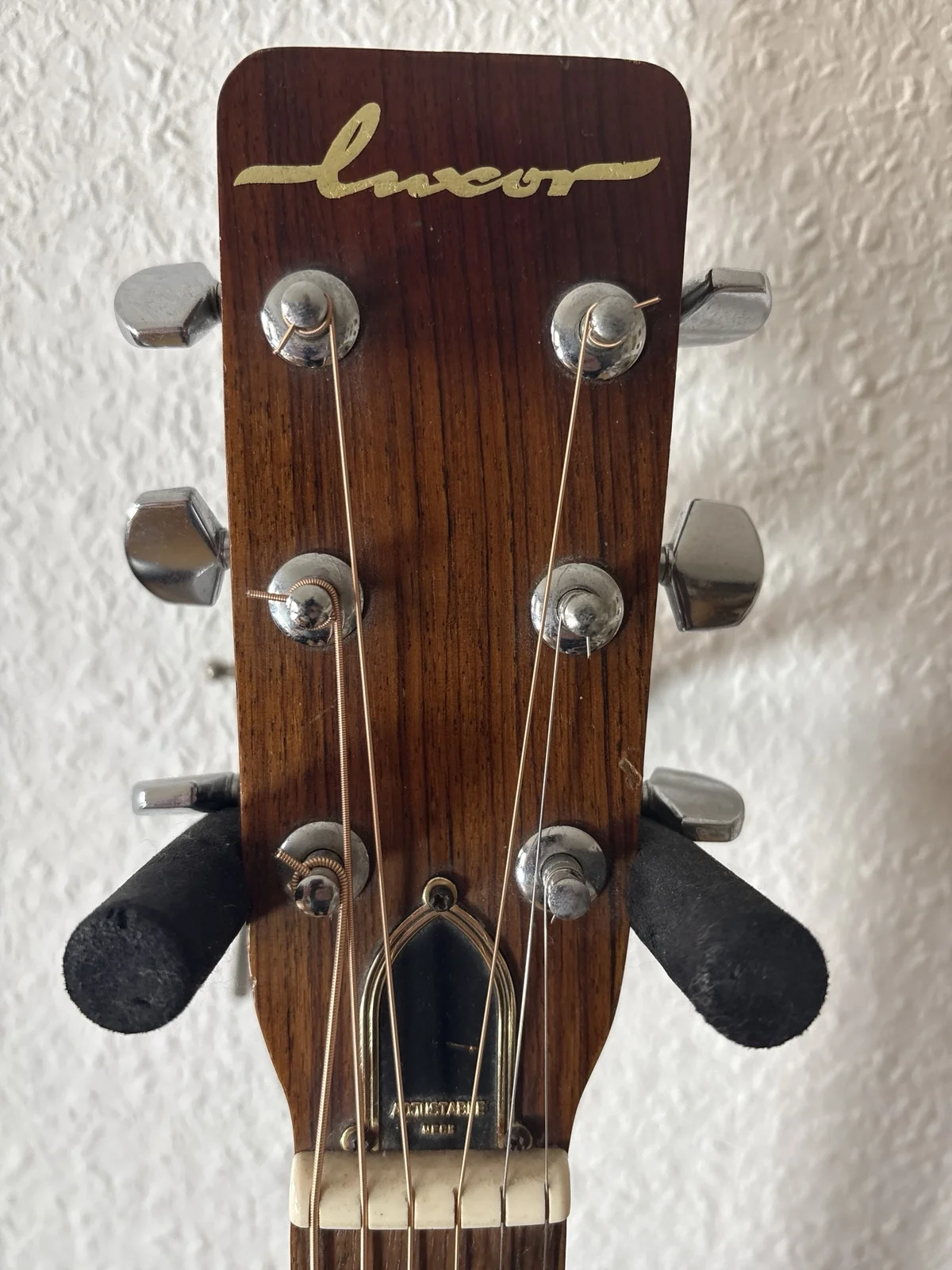 Ich biete hier eine seltene und gut erhaltene Luxor Akustikgitarre Modell 9210 aus japanischer Fertigung an. Die Gitarre stammt vermutlich aus den späten 1970er- oder frühen 1980er-Jahren und überzeugt durch ihren warmen Klang und solide Verarbeitung.