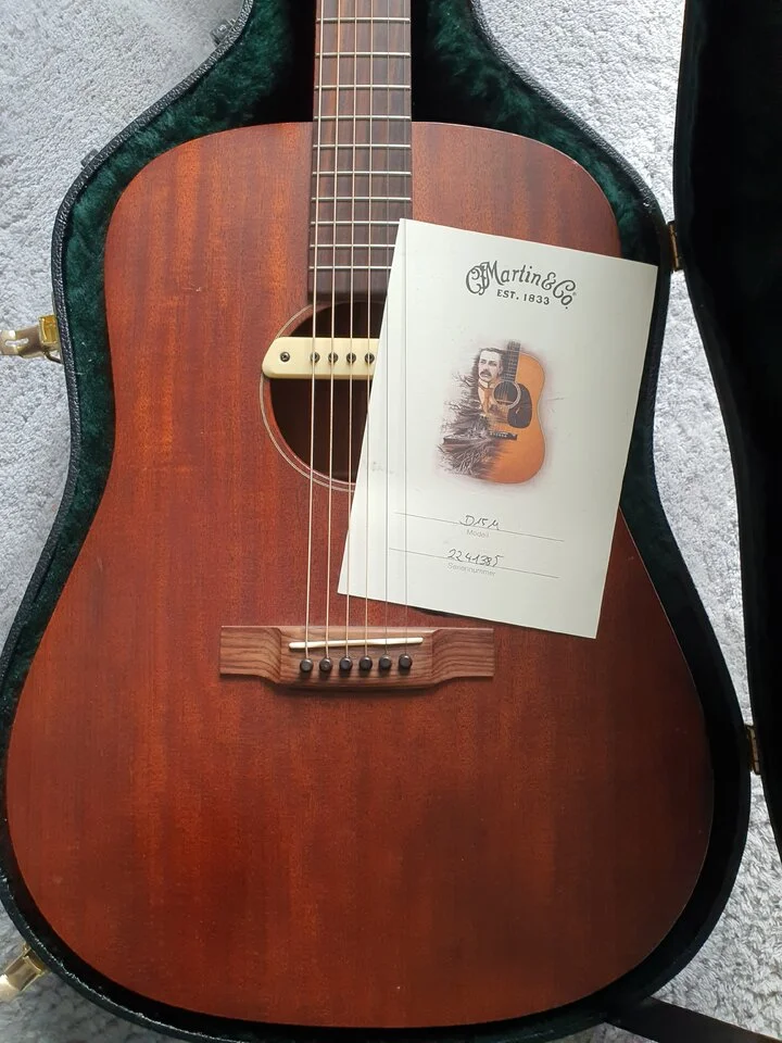 Biete eine wunderschöne Martin D15M, welche ich 2018 neu erworben habe. Die Gitarre befindet sich in einem guten Zustand. Ein paar kleinere Dings & Dongs bzw. Kratzer sind vorhanden (siehe Fotos). Das Mahagoni hat eine sehr schöne Maserung. Die Bünde sind in sehr gutem Zustand. Das Griffbrett wurde stets gepflegt.