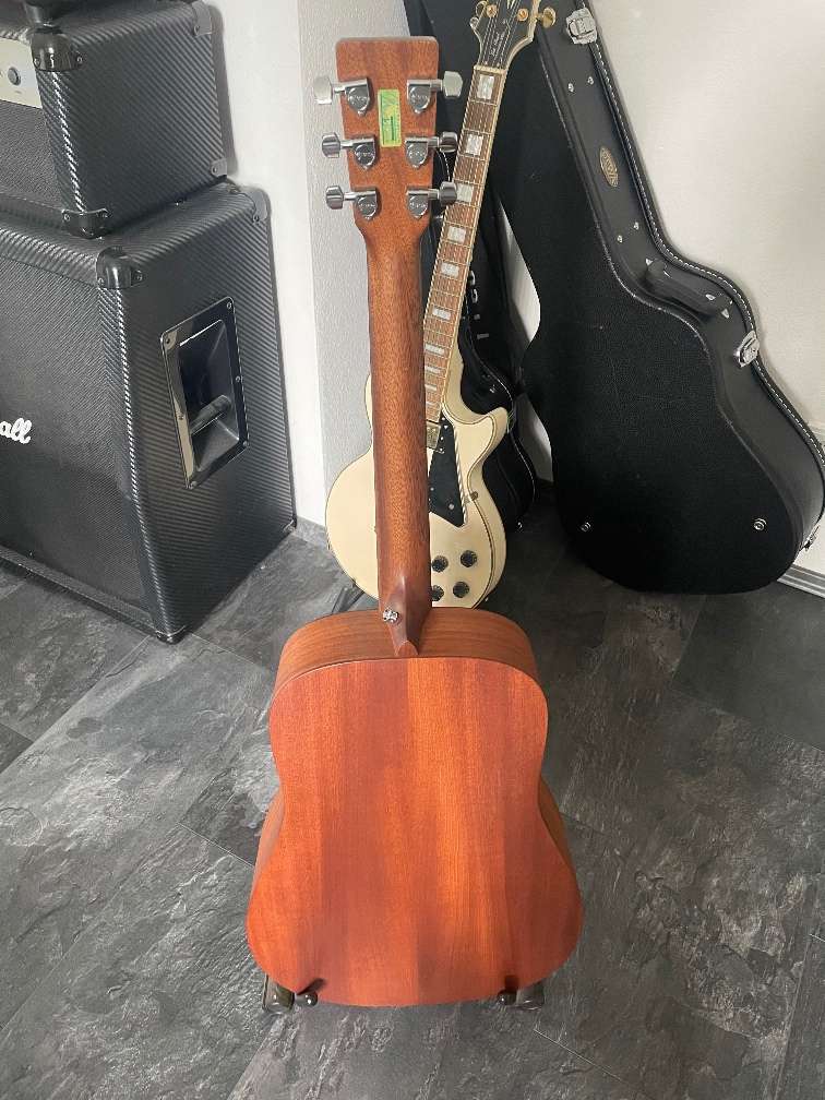 Verkaufe eine gebrauchte Martin Dreadnought Junior. Diese Gitarre wurde im Dezember 2018 gekauft. Gitarre ist in sehr gutem Zustand mit zwei kleinen, rein oberflächlichen bzw. optischen Abnutzungsschäden am Kopf und seitlich unten am Korpus (siehe Fotos)