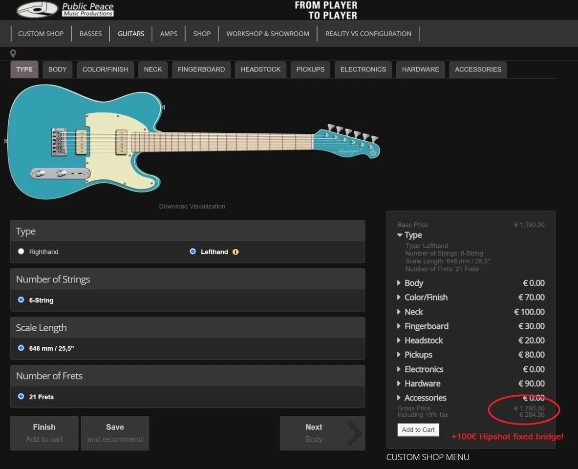 Diese Konfiguratin mit Hipshot Brücke würde aktuell 1880€ kosten!