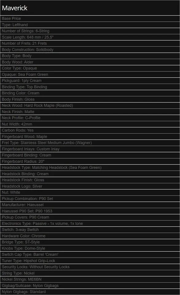 Zum Verkauf steht eine Mensinger Maverick Lefthand Custom Gitarre!