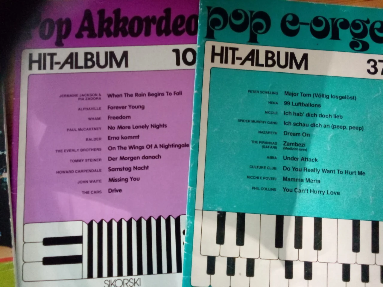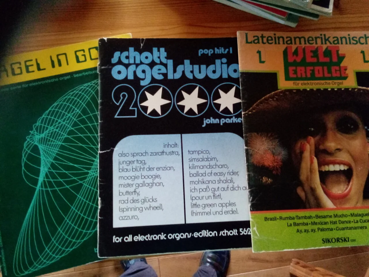 Hallo, habe meine Noten ausgemistet und folgende Schätzchen für Orgel und für Klavier gefunden. Finde ich zu schade zum Wegschmeißen. Wenn jemand Interesse hat und mir das Porto (auch gerne großzügig ;-) ) bezahlt, verschicke ich sie gerne. Gruß Elena