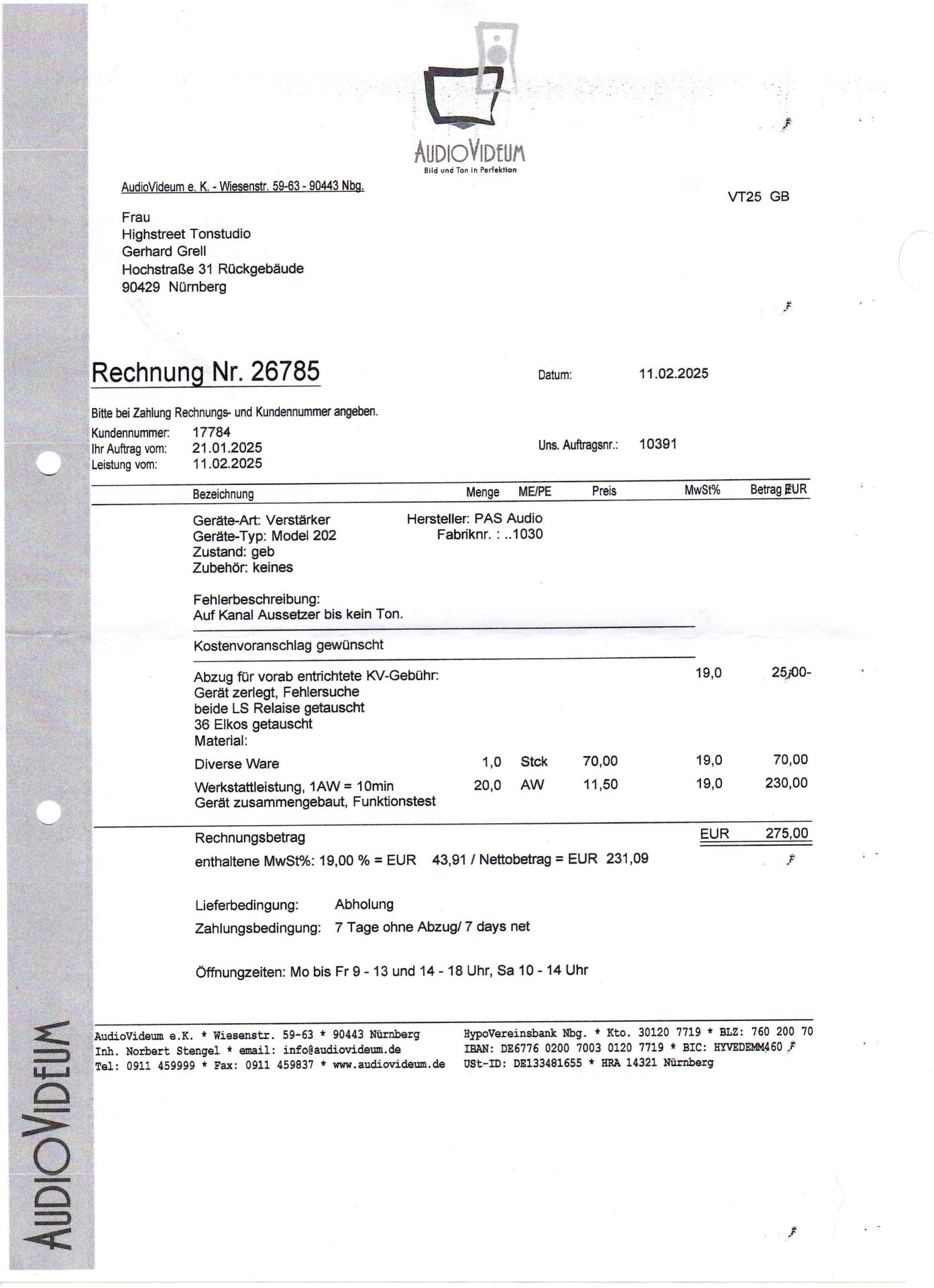 Ich verkaufe meine altgediente PAS-Endstufe, die seit 1993 in meinem Studio ihren absolut LAUTLOSEN (kein Fiepen, kein Brummen) Dienst verrichtet hat - problemlos bis auf eine Störung letztes Jahr.