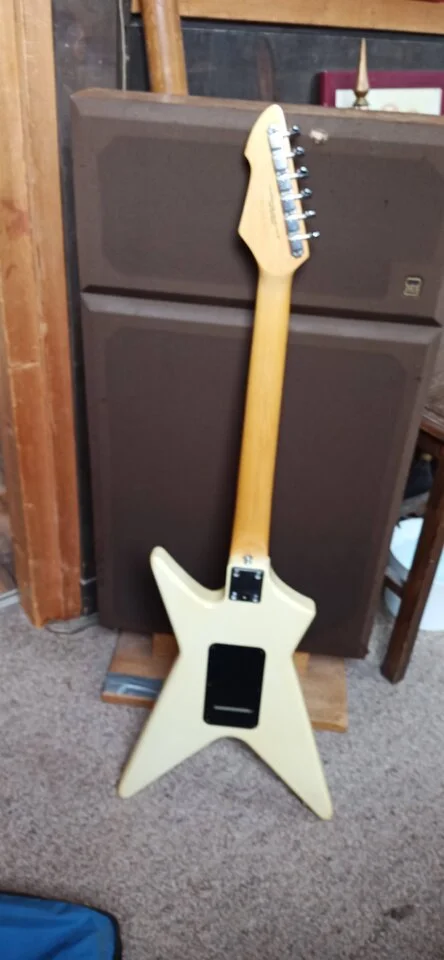 Kosmetisch: Dieser Mantis ist in einem sehr guten gebrauchten Zustand und weist nur kleinere Schrammen und Dellen im Lack und einige Vergilbungen im Lack durch die natürliche Alterung der Farbe auf, aber diese Gitarre hat keine schwerwiegenden Makel und keine Brüche, Risse oder sichtbare Reparaturen.
