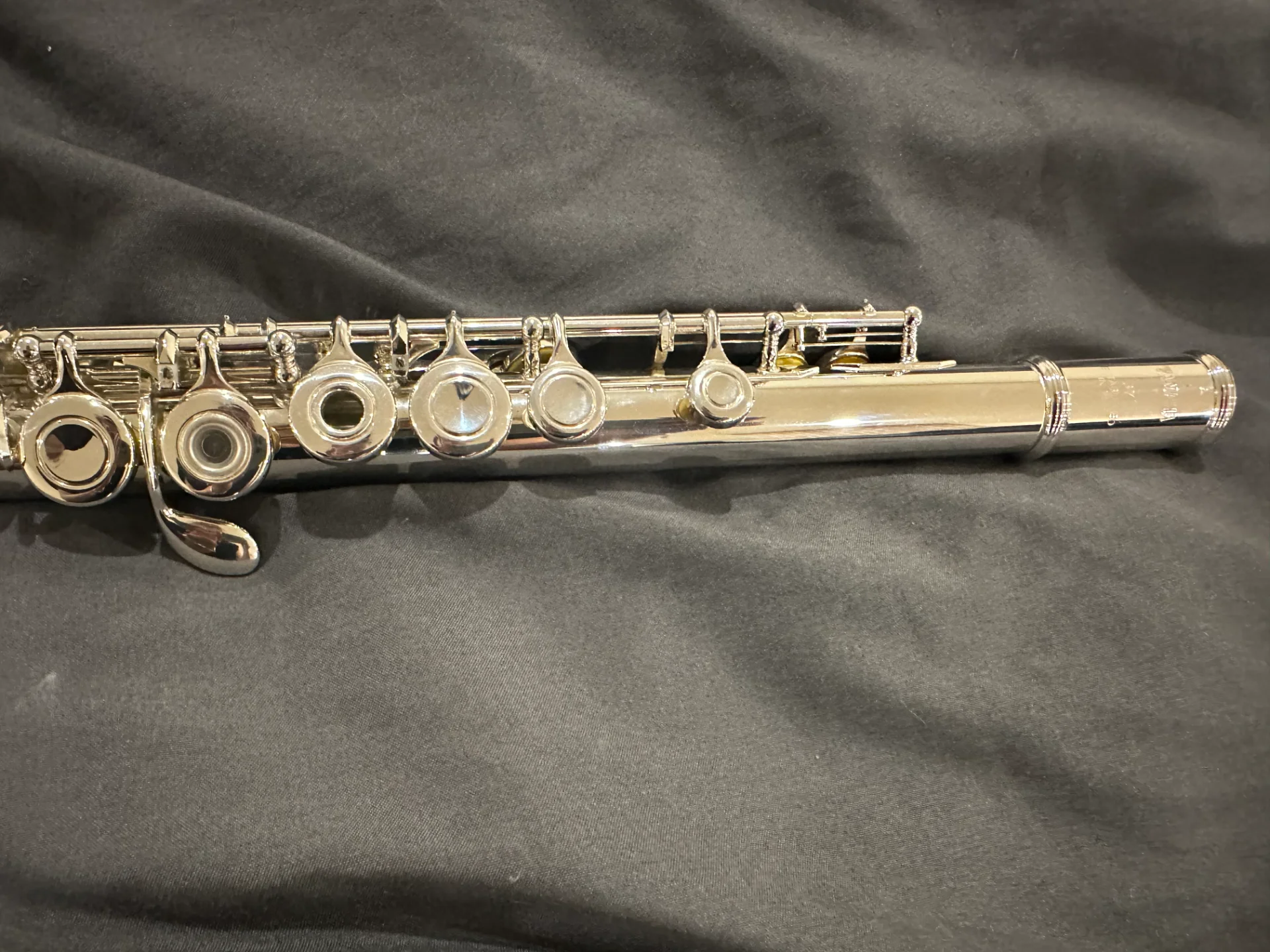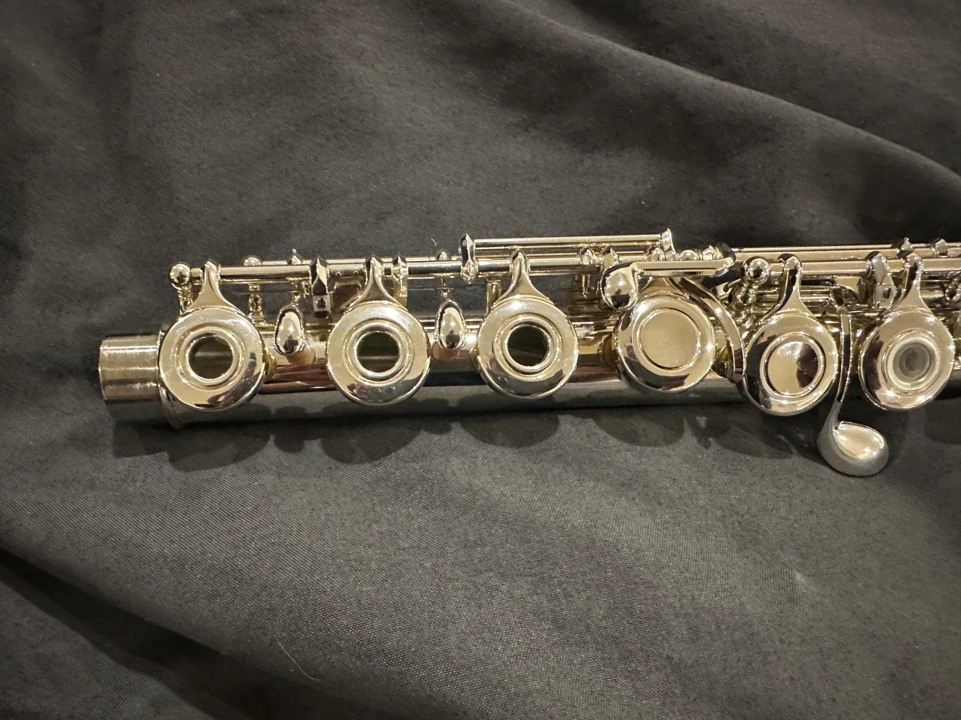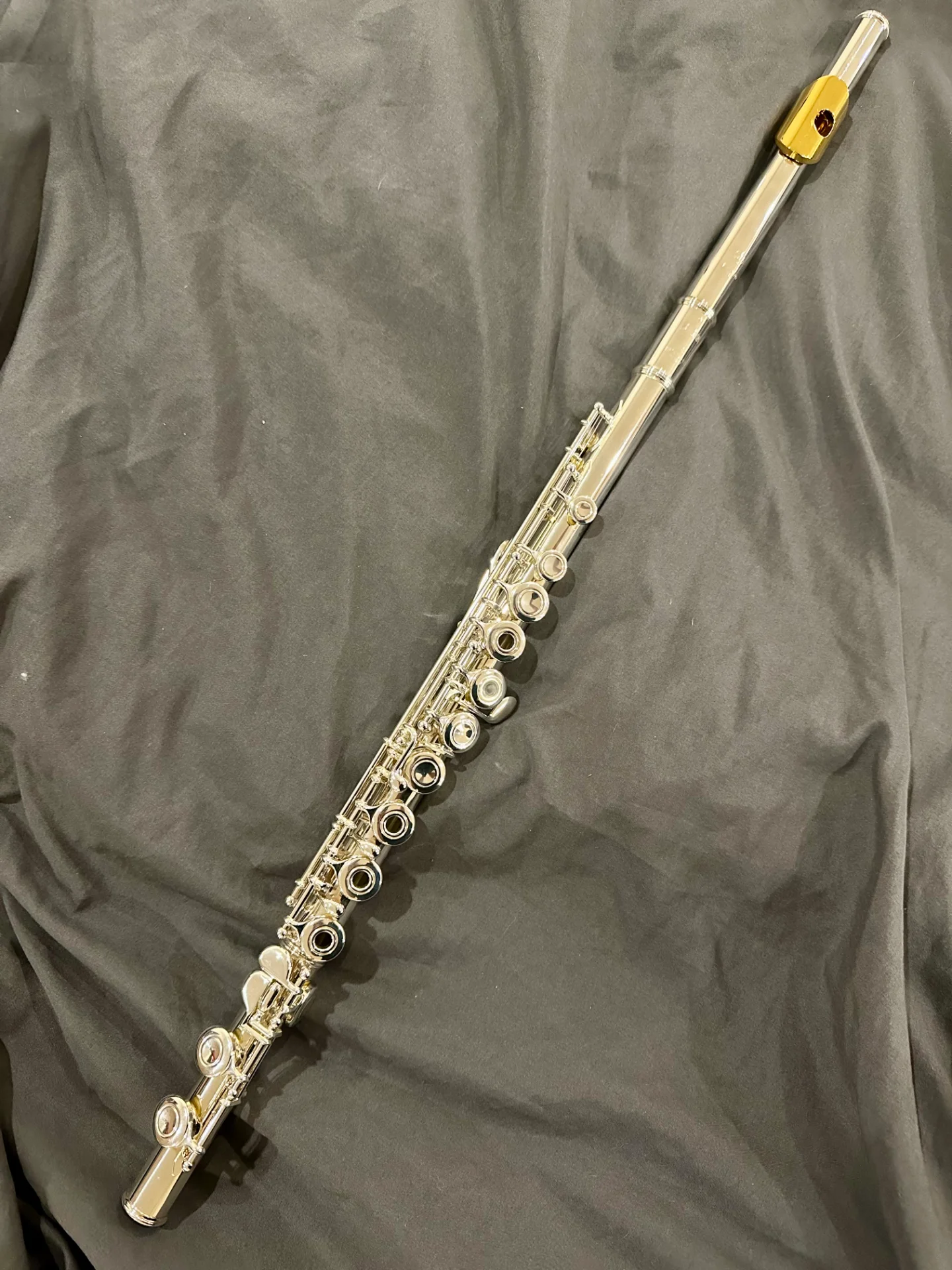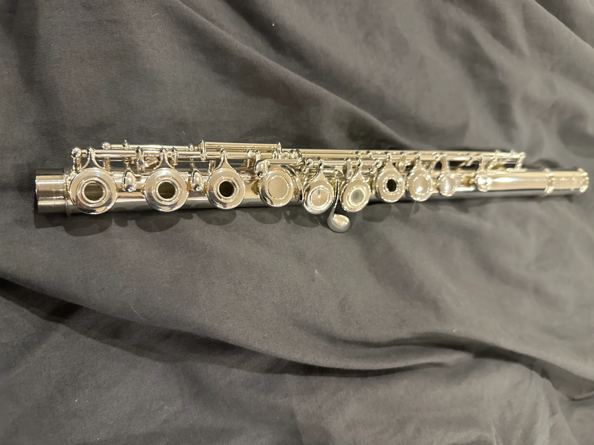 Die Flöte ist ca. 13 Jahre alt, befindet sich jedoch in einem sehr guten gepflegten Zustand und wurde stets sorgfältig behandelt.