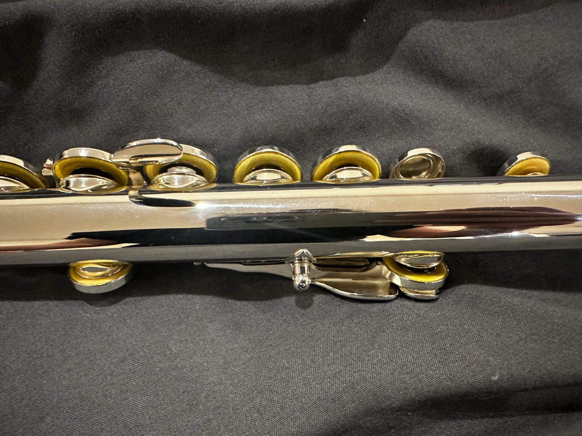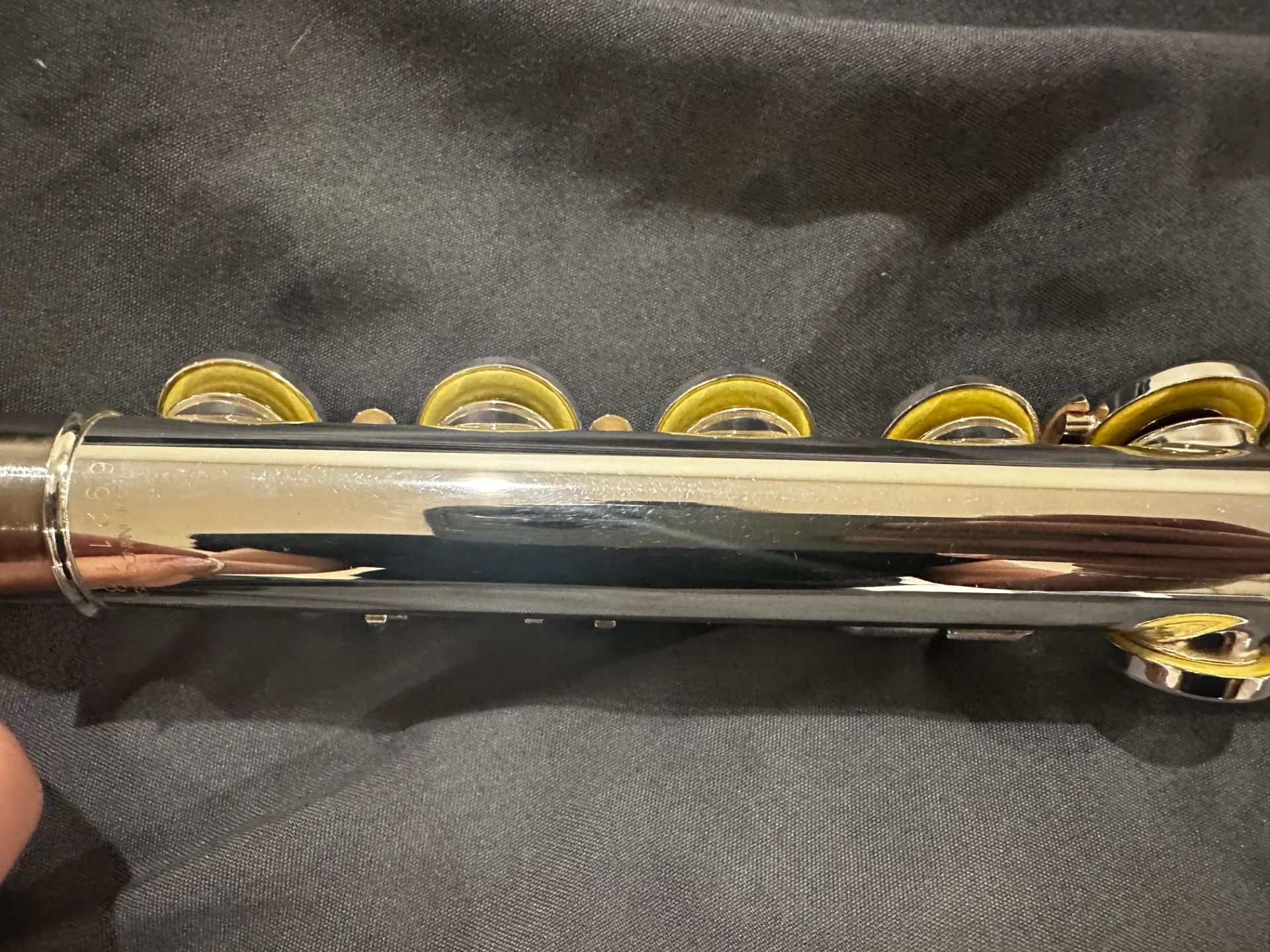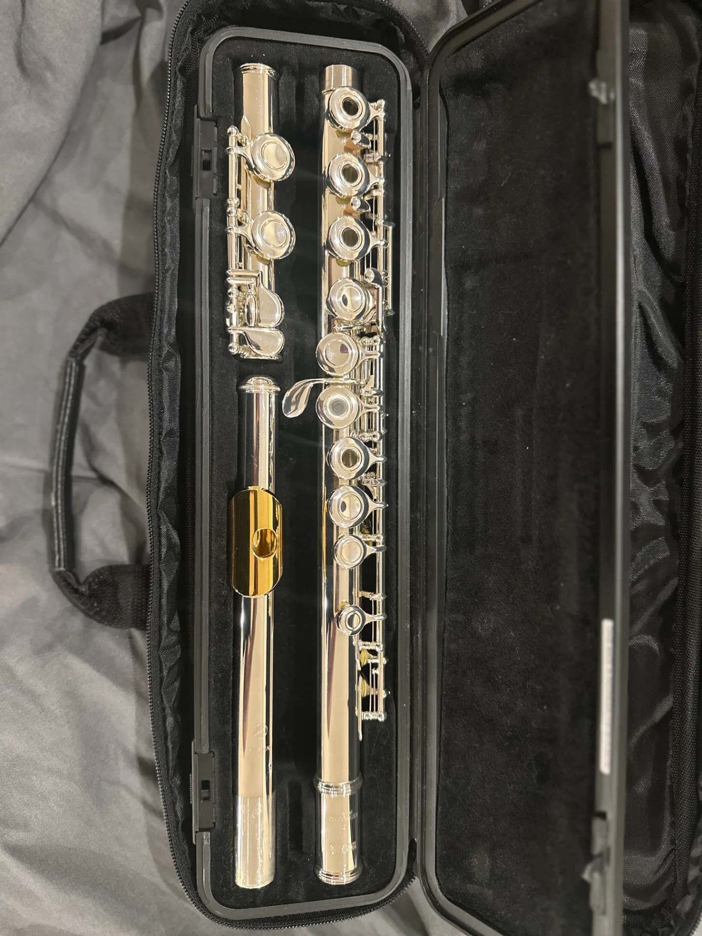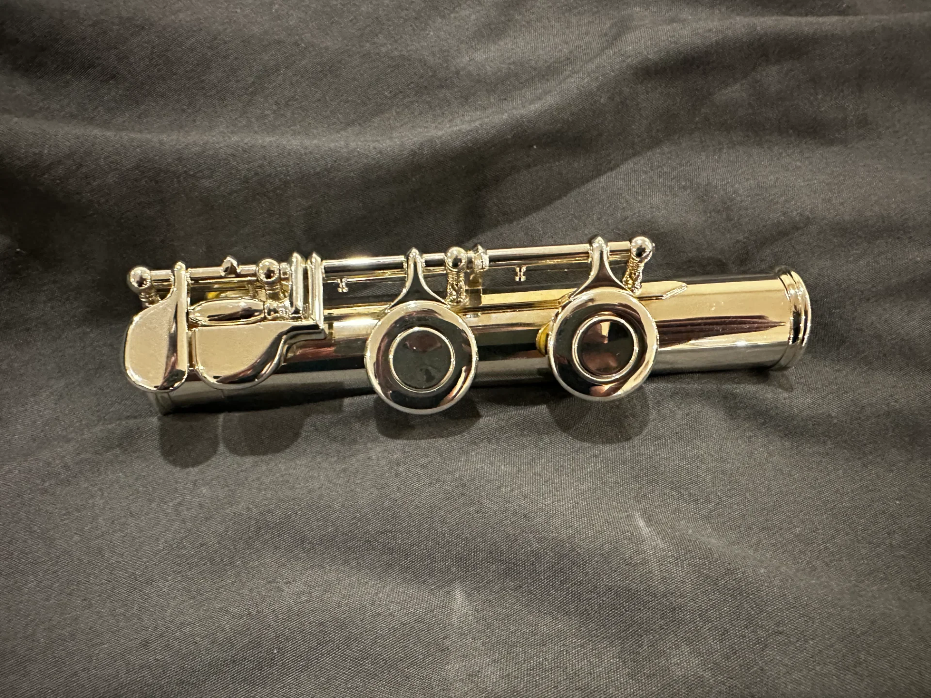 Die Flöte ist ca. 13 Jahre alt, befindet sich jedoch in einem sehr guten gepflegten Zustand und wurde stets sorgfältig behandelt.