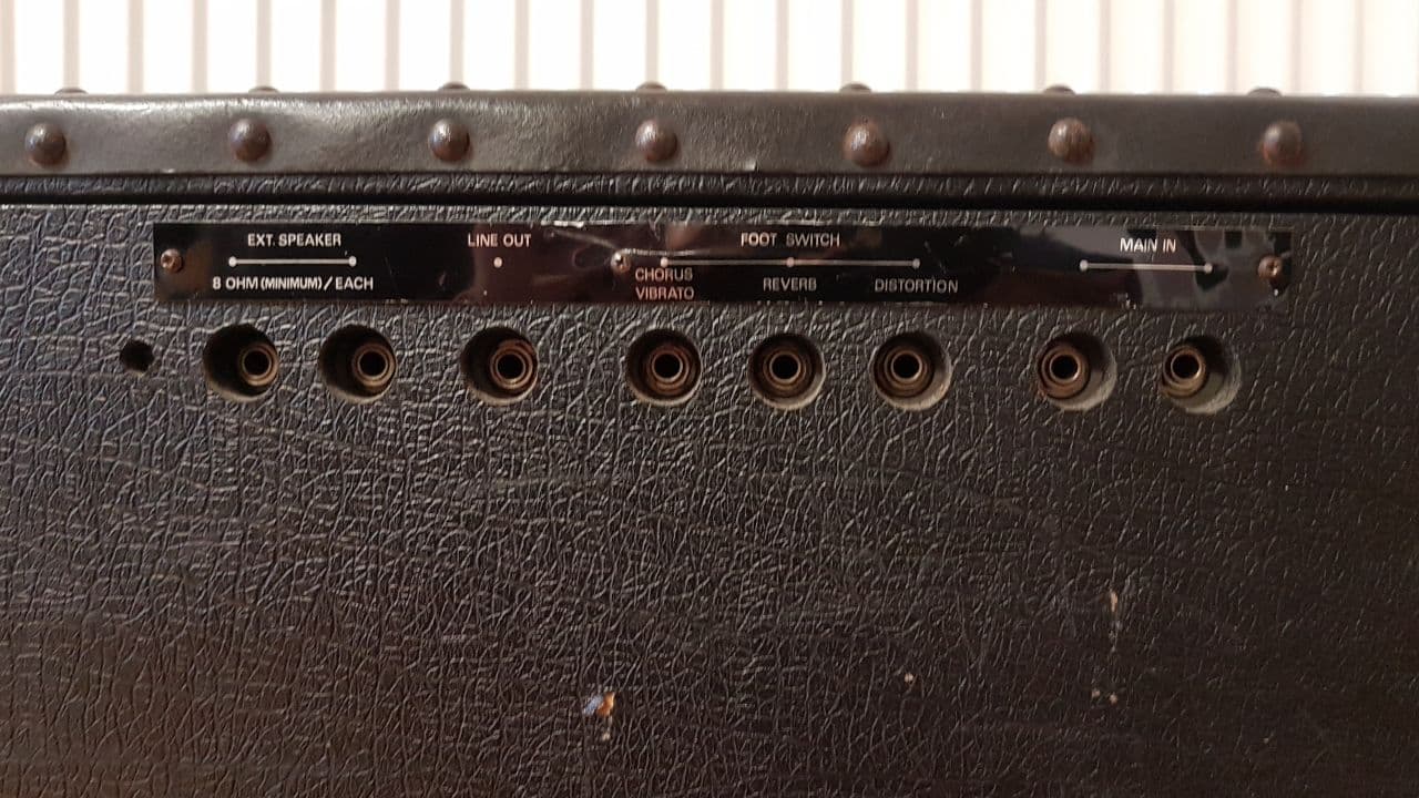 Lineout, Foot switch für Distortion/Chorus/Reverb, externe Lautsprecher li./re., Main in(=out)