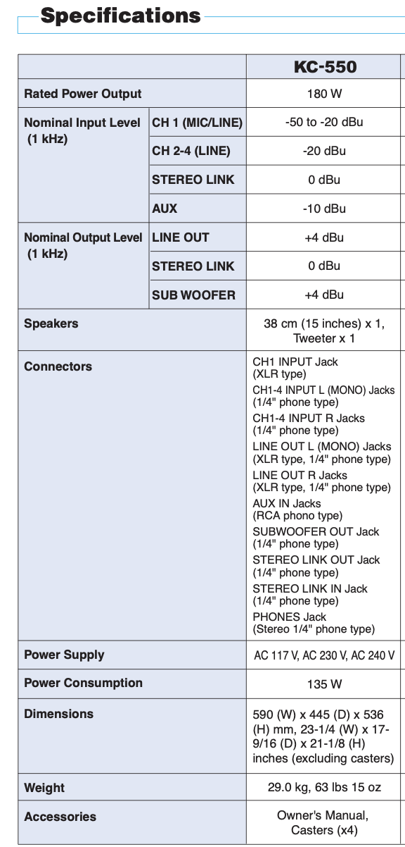 Hat auch viel Zusatzmöglichkeiten, z.B. Kopfhörer-monitorweg, Sub-Box-Ausgang, Stereobetrieb usw.. Siehe hierzu auch die Produktbeschreibung auf der Roland- Homepage. 15" Speaker und Hochöner wie PA-Box.