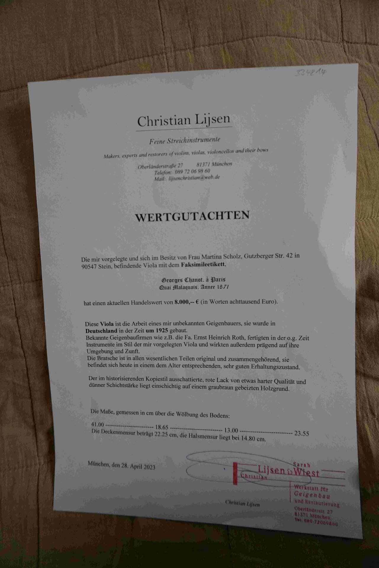 Angaben zum Versand Nur Abholung Artikelstandort 90559 gebaut von Chanot 41 cm Korpuslänge guter Zustand. Mit Zertifikat.