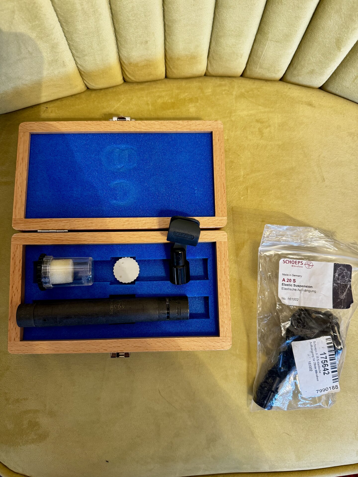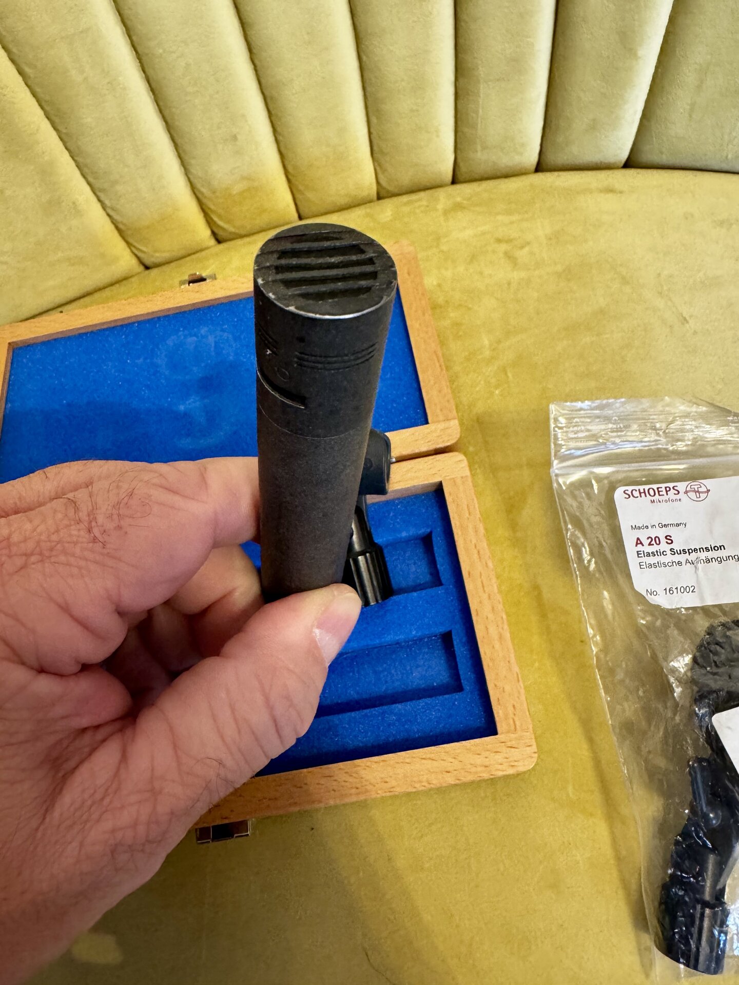 Das Mikro ist gebraucht und funktioniert einwandfrei, die MK5 ist superflexibel, da Aufnahmen sowohl mit Niere als auch mit Kugel möglich sind. Dabei ist ein Kästchen von Schoeps und die A20S Elastic Suspension. Es handelt sich um einen Privatverkauf ohne Gewährleistung.