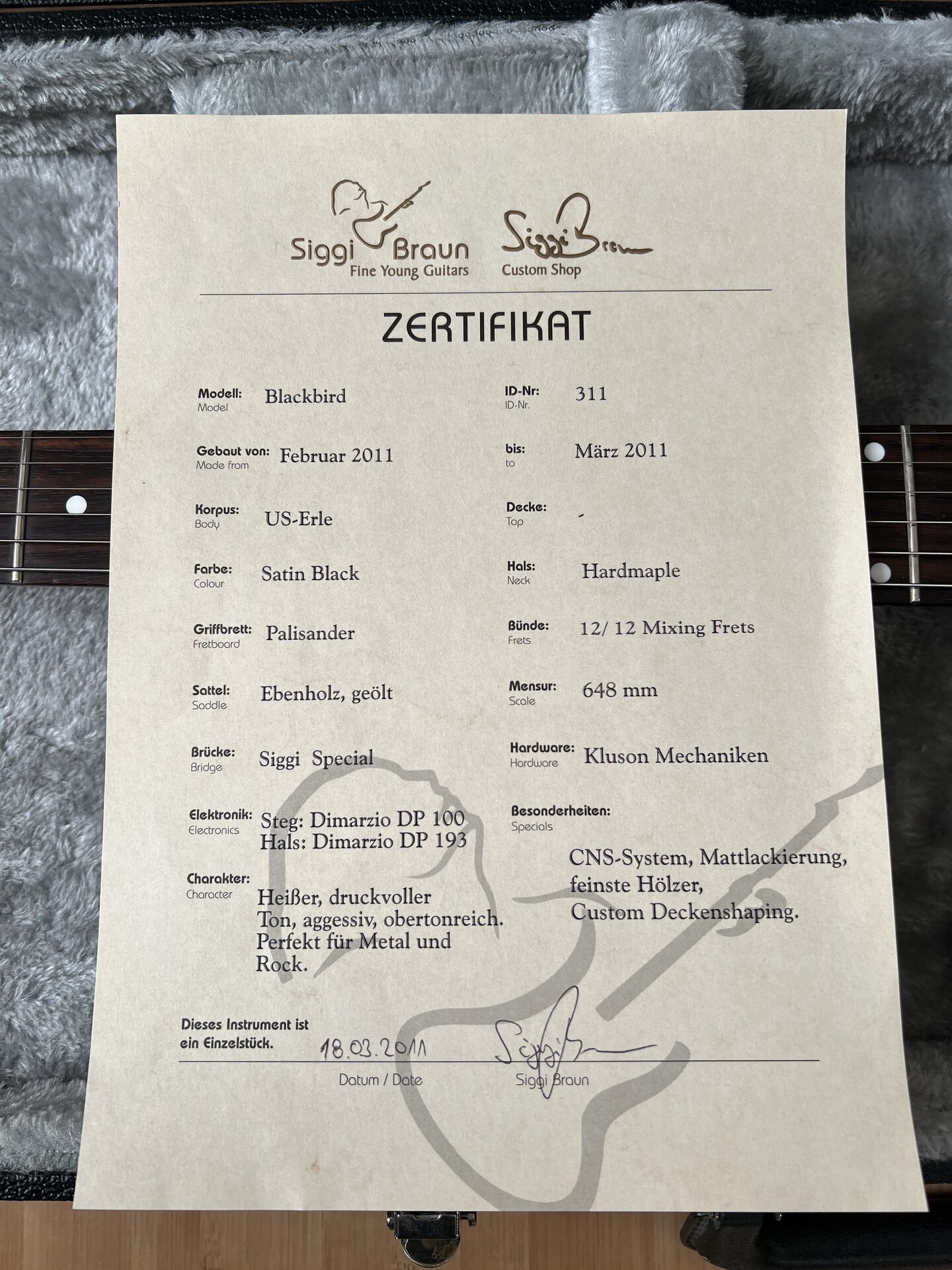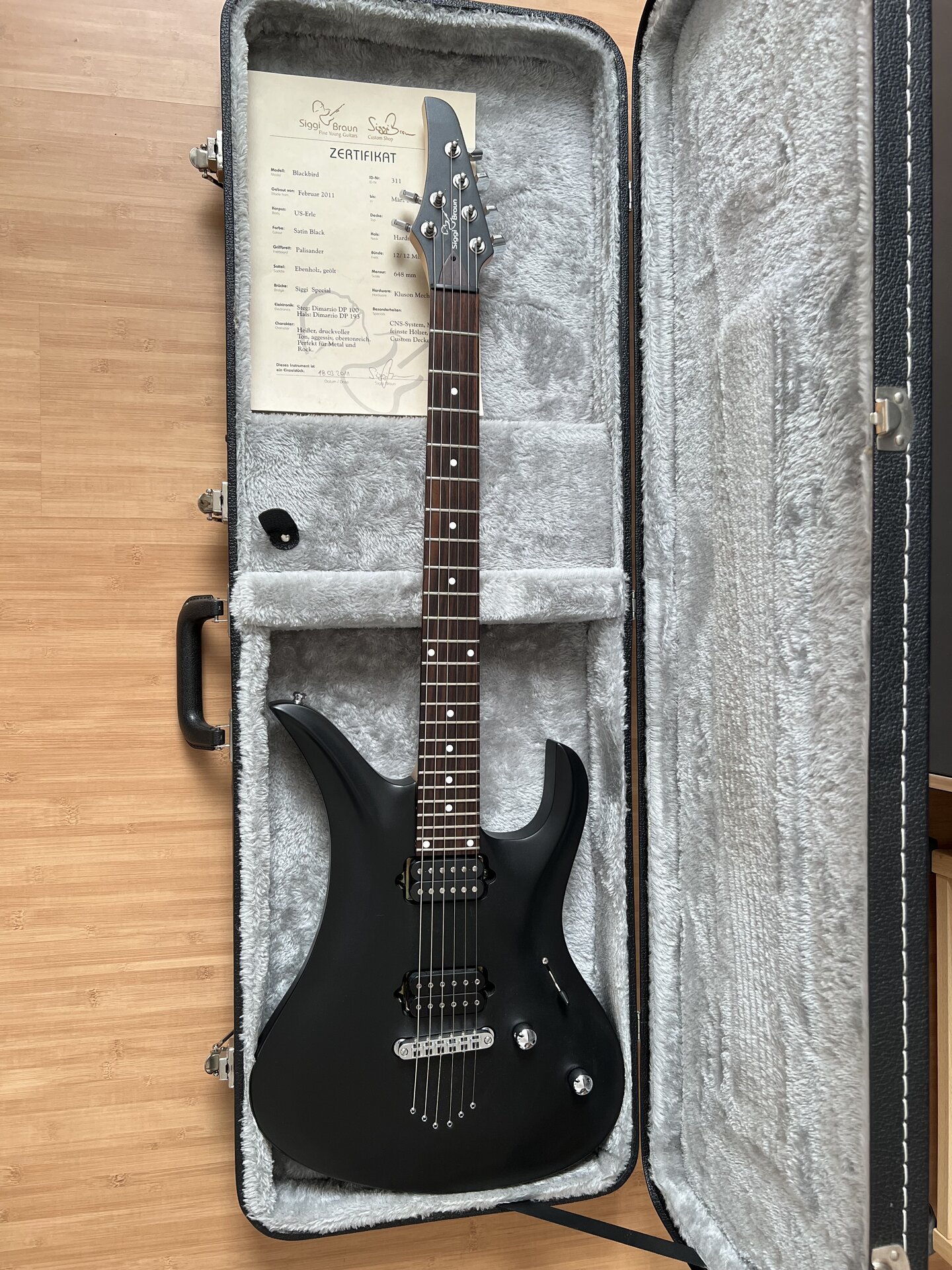 ich biete hier eine Siggi Braun Blackbird aus dem Custom Shop zum Verkauf an.