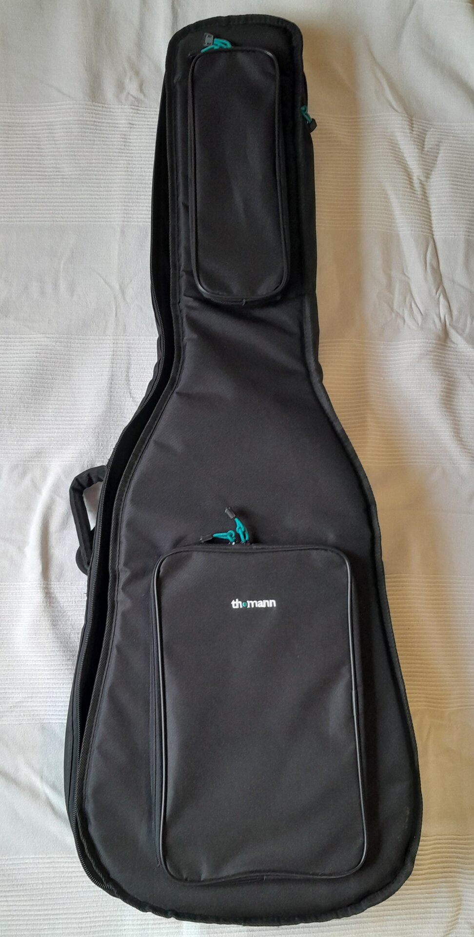 Der Bass kommt mit Gigbag und passendem Ersatz/Austausch-Schlagbrett.