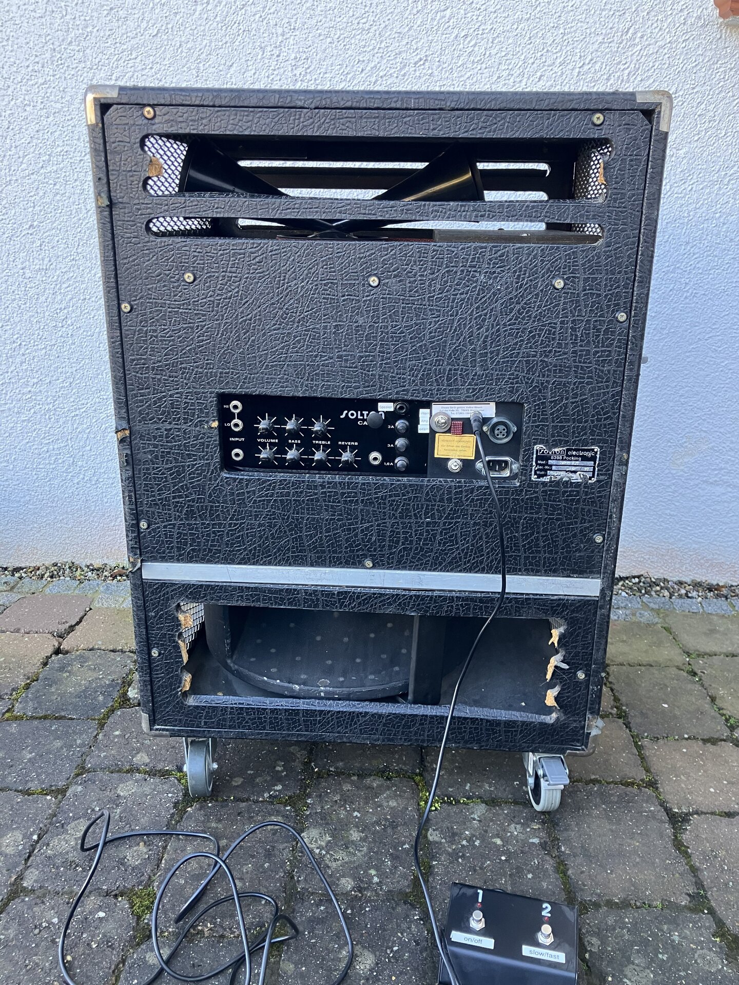 Verkaufe ein gebrauchtes Rotorkabinet (LESLIE) von SOLTON. Das Leslie wurde viel gespielt und man hat auch deutliche Gebrauchsspuren (insbesondere sind die Querstreben bei den Lautsprecheröffnungen teilweise gebrochen. Technisch ist es jedoch in einem sehr guten Zustand und wurde immer gepflegt (auch die Antriebsriemen sind erneuert).
