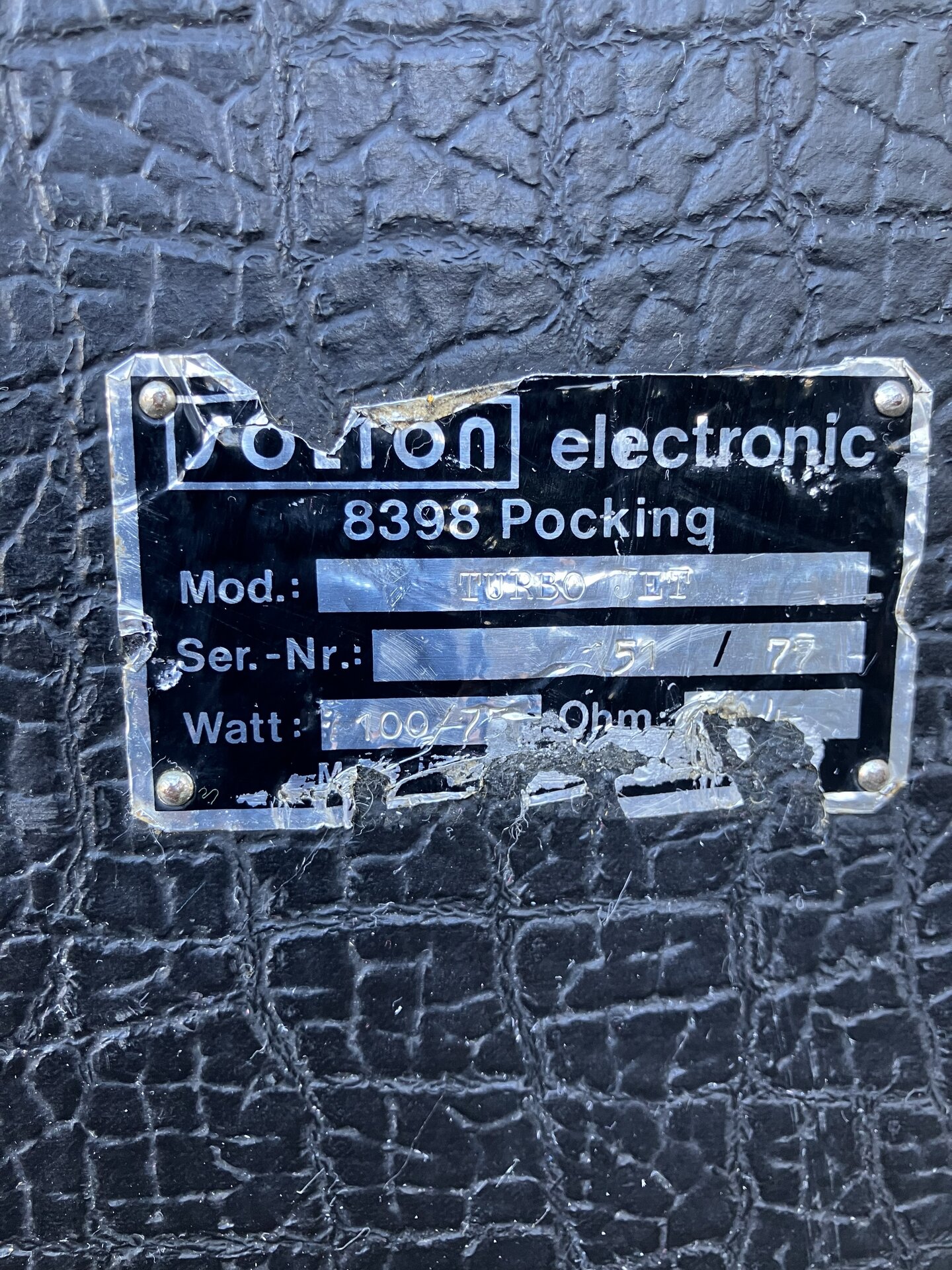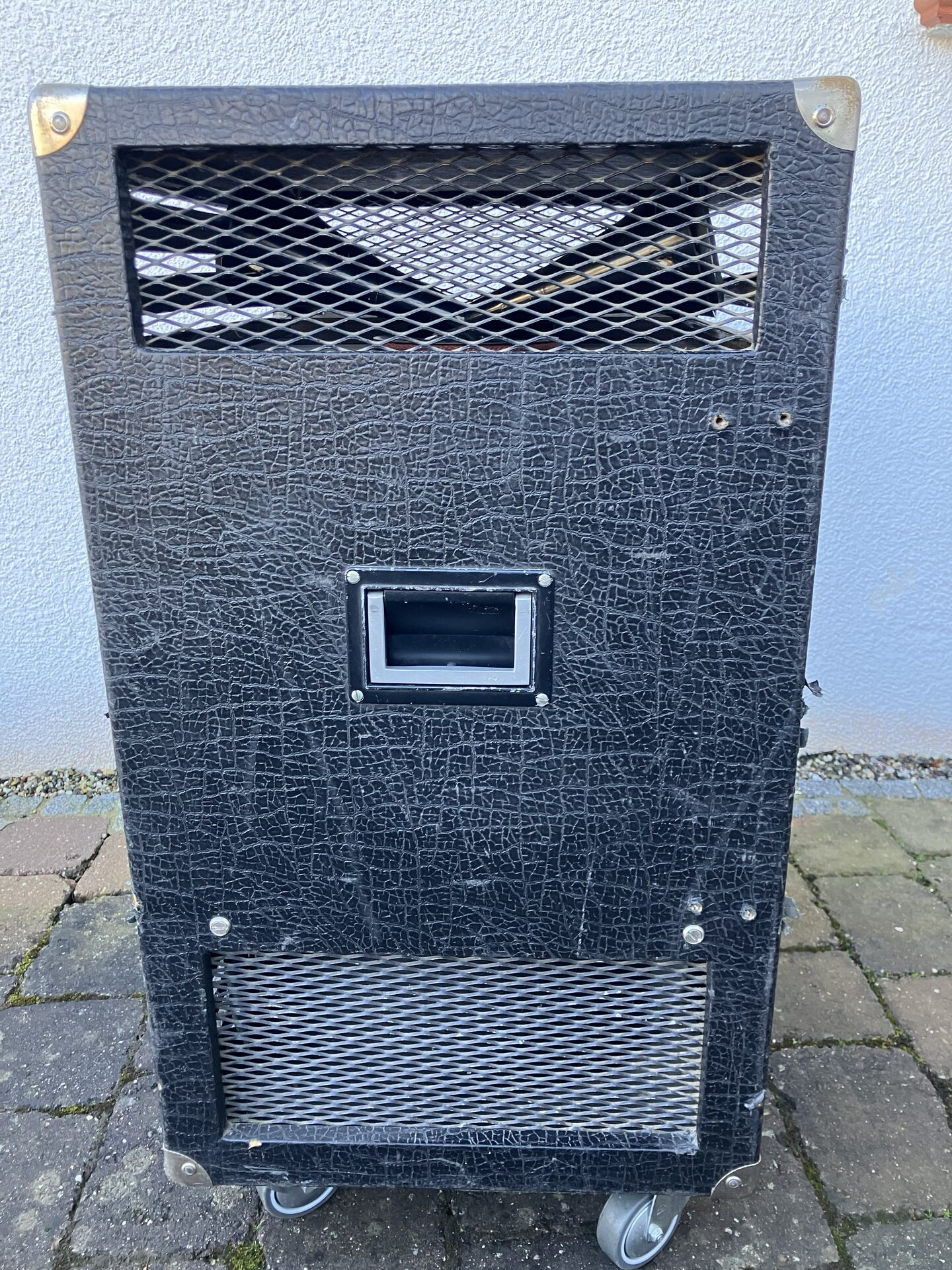 Es hat eine Transistorendstufe mit einer Leistung von 100 Watt mit einem 12 Zoll Basslautsprecher und einem Hochtonhorn. Das Gewicht beträgt 37 kg und ist noch gut transportabel.