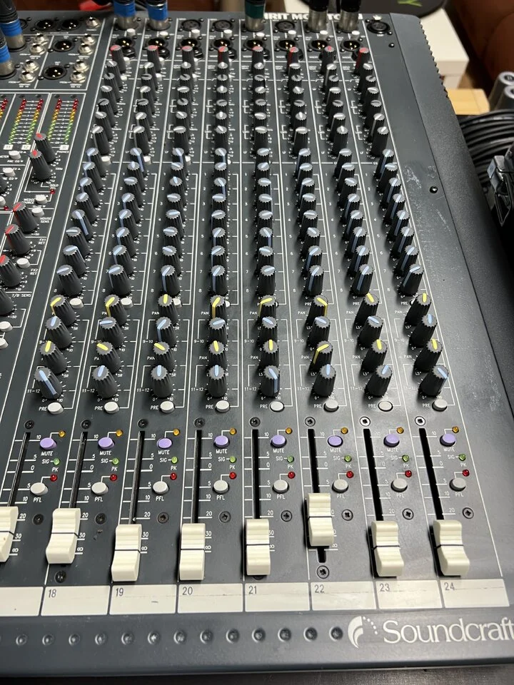 Verkaufe ein Soundcraft Spirit Monitor 2 mit 24 Kanälen. Das Pult hat uns mehrere Jahre treue Dienste in unserem Proberaum (Nichtraucher) geleistet.