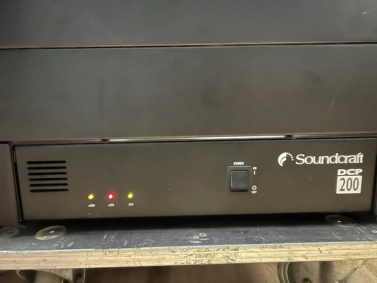 Verkauft wird das Pult mit Flight-Case und Soundcraft DCP200 Netzteil (das Netzteil wird mit Rackwinkel verkauft).
