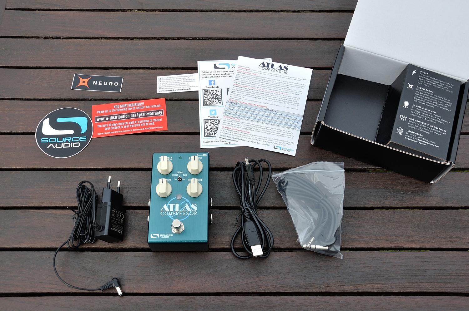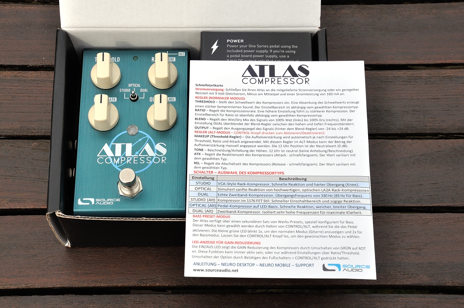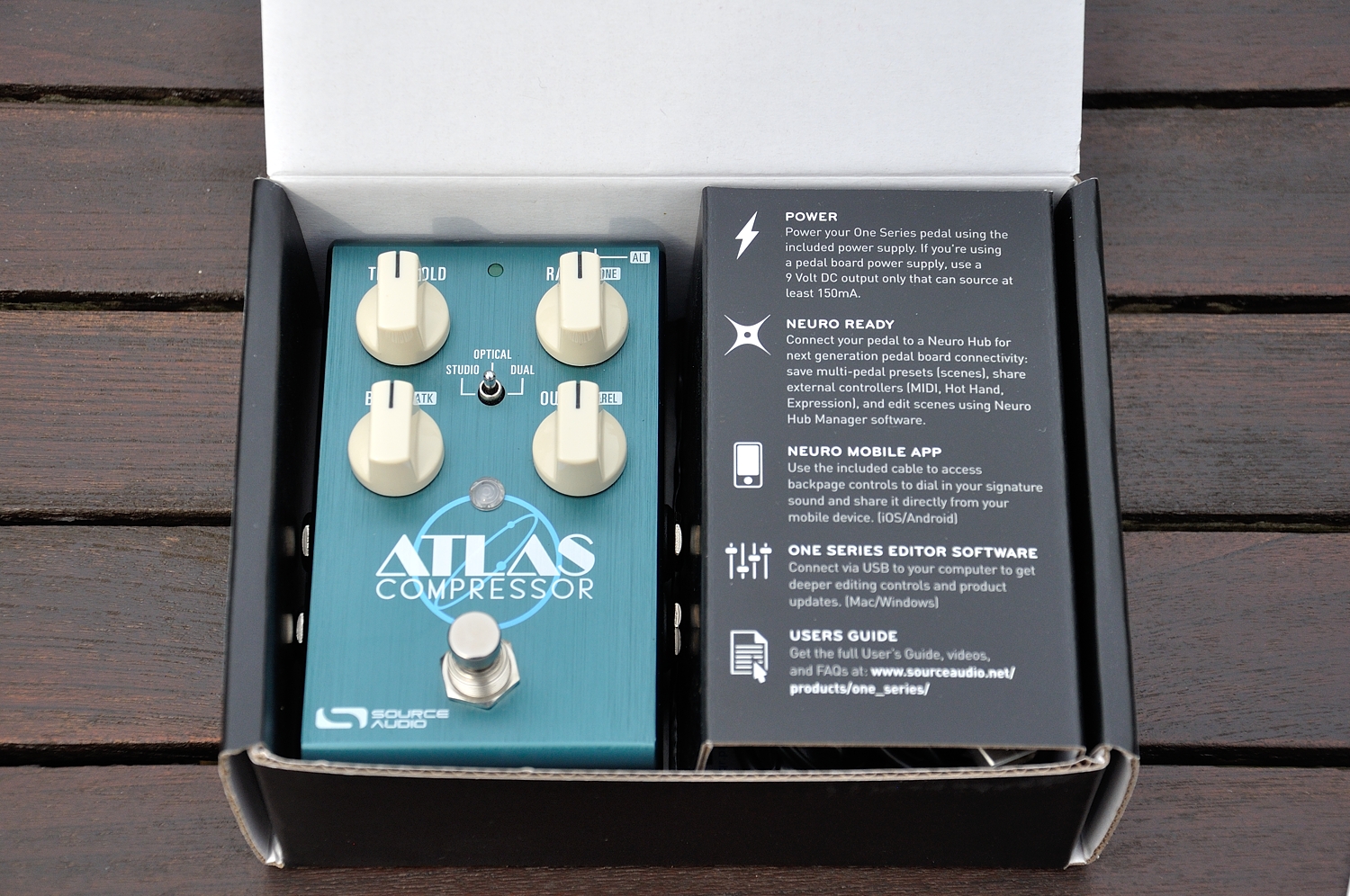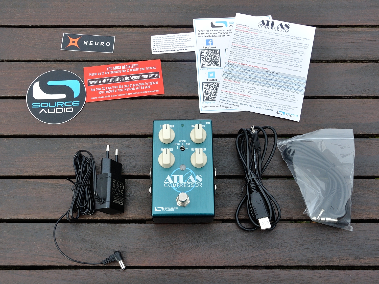 Zum ATLAS selber könnte man wahrscheinlich Romane schreiben, da er so vielfältig und bis ins kleinste Detail editierbar ist. Ich belasse es mal dabei, dass er hervorragend klingt und überaus flexibel im Einsatz ist. Es sind zwei Kompressoren A und B vorhanden, die getrennt, aber auch in Serie oder parallel geschaltet werden können. Jeder der beiden Kompressormodule ist über den kostenlosen Neuro-Editor voll editierbar. Bis zu sechs Presets kann man direkt von der Geräteoberfläche abrufen, intern sind jedoch 127 Presets speicherbar. Über den Neuro-Hub kann man das Gerät auch über MIDI steuern - das habe ich aber nie gemacht. Ein entsprechendes Kabel liegt bei. Es gibt übrigens auch einen speziellen Bass-Modus, wo die Sidechains etwas anders programmiert sind als im Gitarrenmodus.