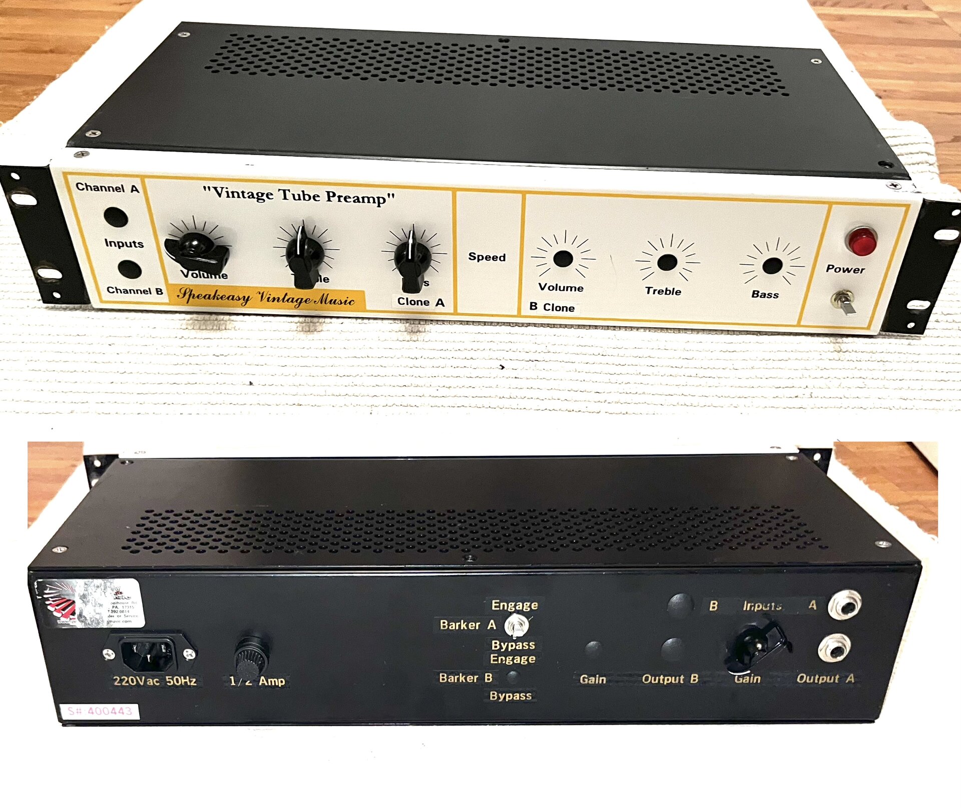 19“ Version of the Speakeasy Vintage Tube Preamp for Hammond Organs & Leslie . Costomized version with the so-called "barker" pre stage, which brings additional gain to the input tube for more distortion! Great warm sound with nice distortion! Further pics on request. Used, in good condition. See pics.