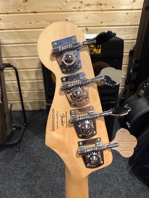 Ich verkaufe meinen 2012er Squier Jazz Bass. Es handelt sich um eine Nachahmung des ikonischen 70er Fender Jazz Bass mit Block Inlays.