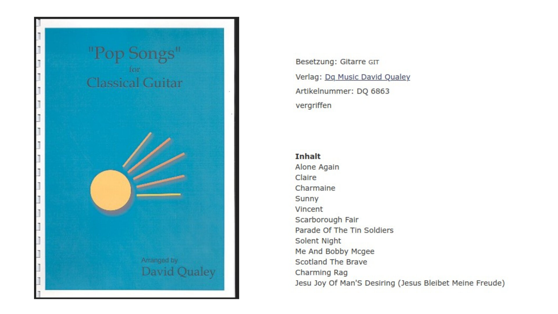 ich bin auf der Suche nach dem Notenheft „Popular Pop Songs for Classical Guitar“ von David Qualey (Verlag: DQ Music, Artikel-Nr. DQ 6863).
