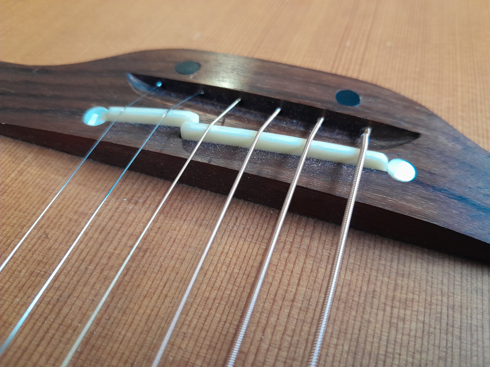 Boden und Zargen aus Mahagoni, mit schöner Zederndecke.