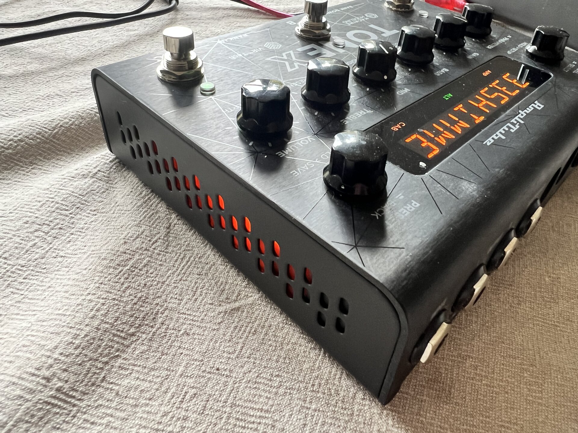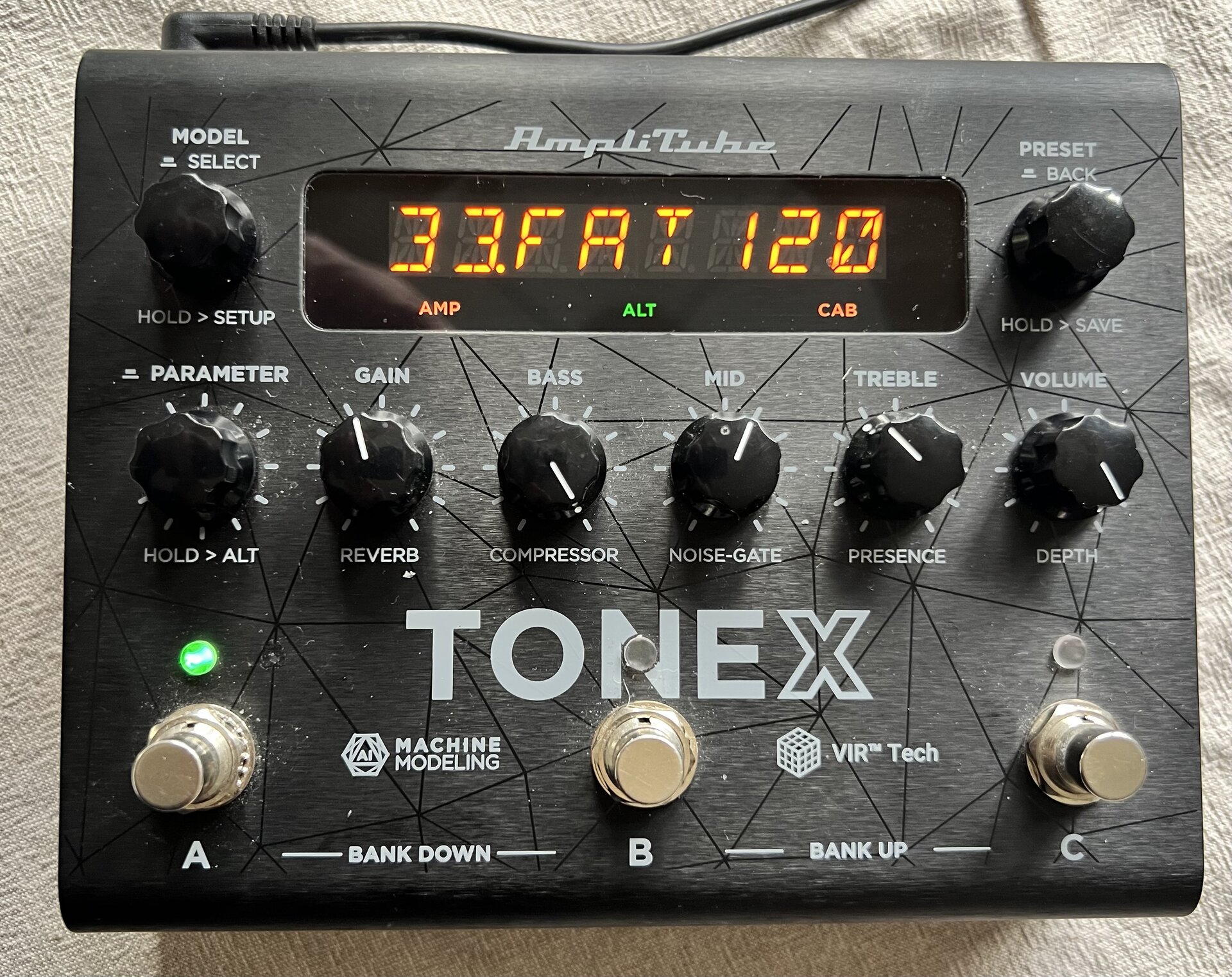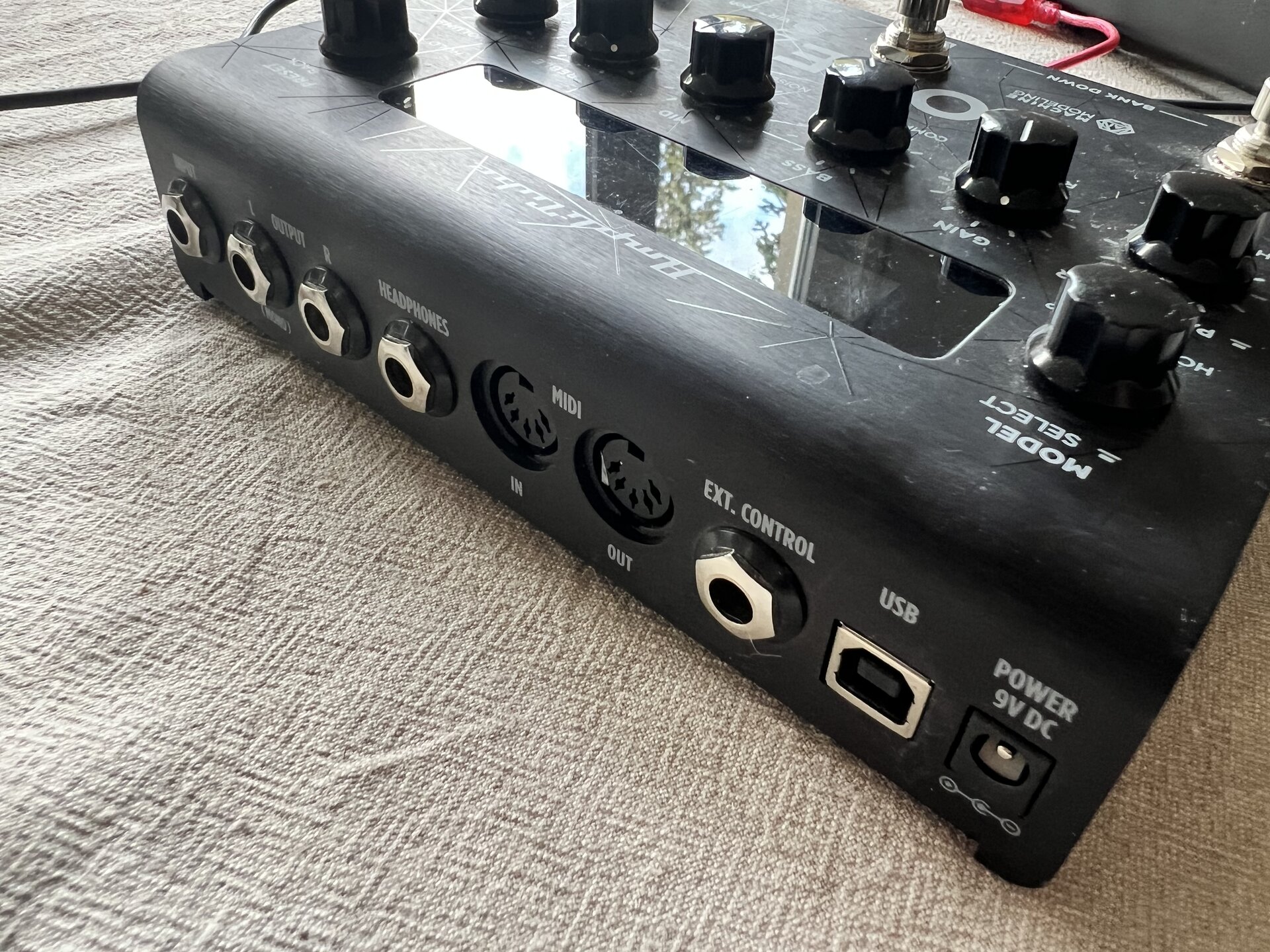 Das Original-Netzteil habe ich nicht, es funktioniert mit jedem normalen 9-Volt-Netzteil. Ich habe es an einer normalen Pedalboard-Stromversorgung betrieben. Ein USB-B auf USB-A-Kabel liegt bei (nicht original, aber einwandfrei).