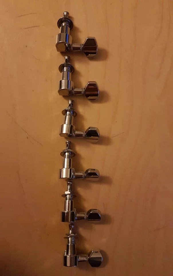 Ich verkaufe sechs neuwertige Linkshänder-Stimmmechaniken (6R) inkl. Muttern und Scheiben. Farbe ist Chrom.