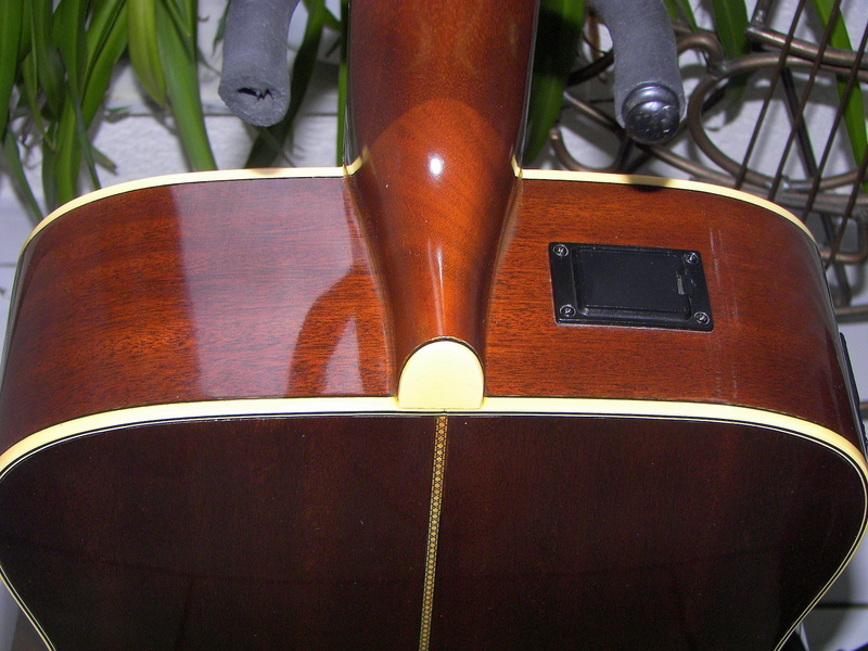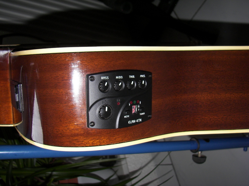 Die Gitarre besitzt wie ihr auf den original Fotos sehen könnt einen Belcat ELAN - 4TN Tonabnehmer mit Klinkenbuchse und Vorverstärker. Der Tonabnehmer hat eine 4 Weg Klangregler, Stimmgerät und Lautstärkeregler.