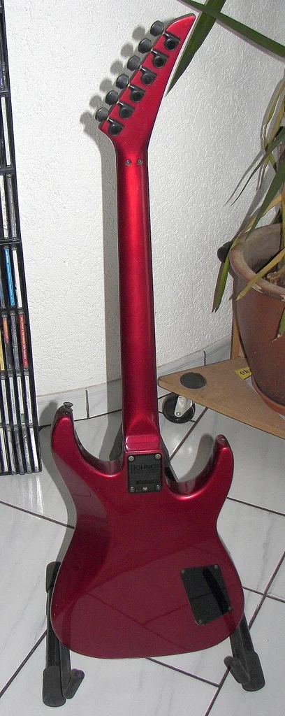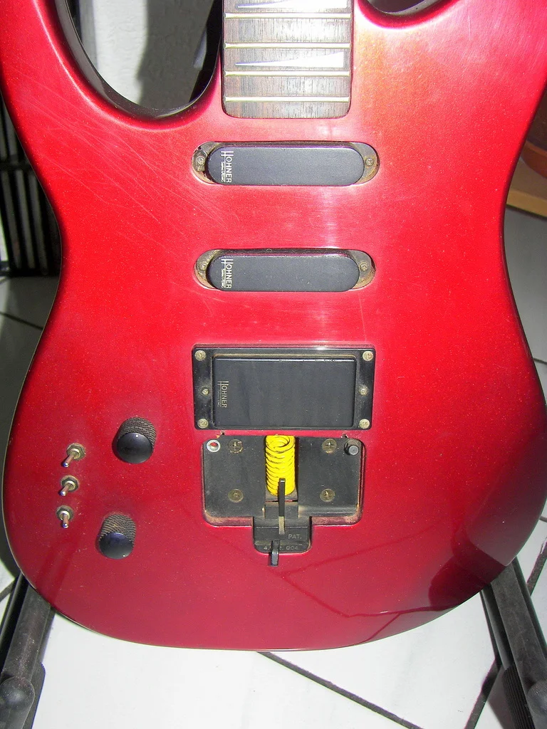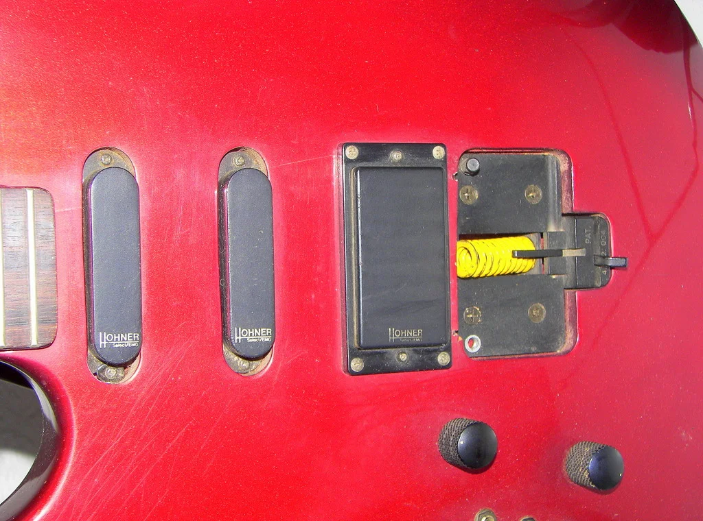 Der Hals ist aus kanadischem Ahorn mit Palisandergriffbrett, Haifischzahn-Inlays, Erlenkorpus und sie hat die EMG-Hohner-Pickups (lizenzierte EMG Stacked Humbucker), Coil-Split- und Phasenschalter (die man per Push-Pull-Poti koppeln kann) für unzählige Klangoptionen. Die Gitarre hat außerdem drei separate Ein-/Ausschalter, mit denen man die Steg- und Halstonabnehmer gleichzeitig oder alle drei als Humbucker oder Single-Coils einstellen kann.