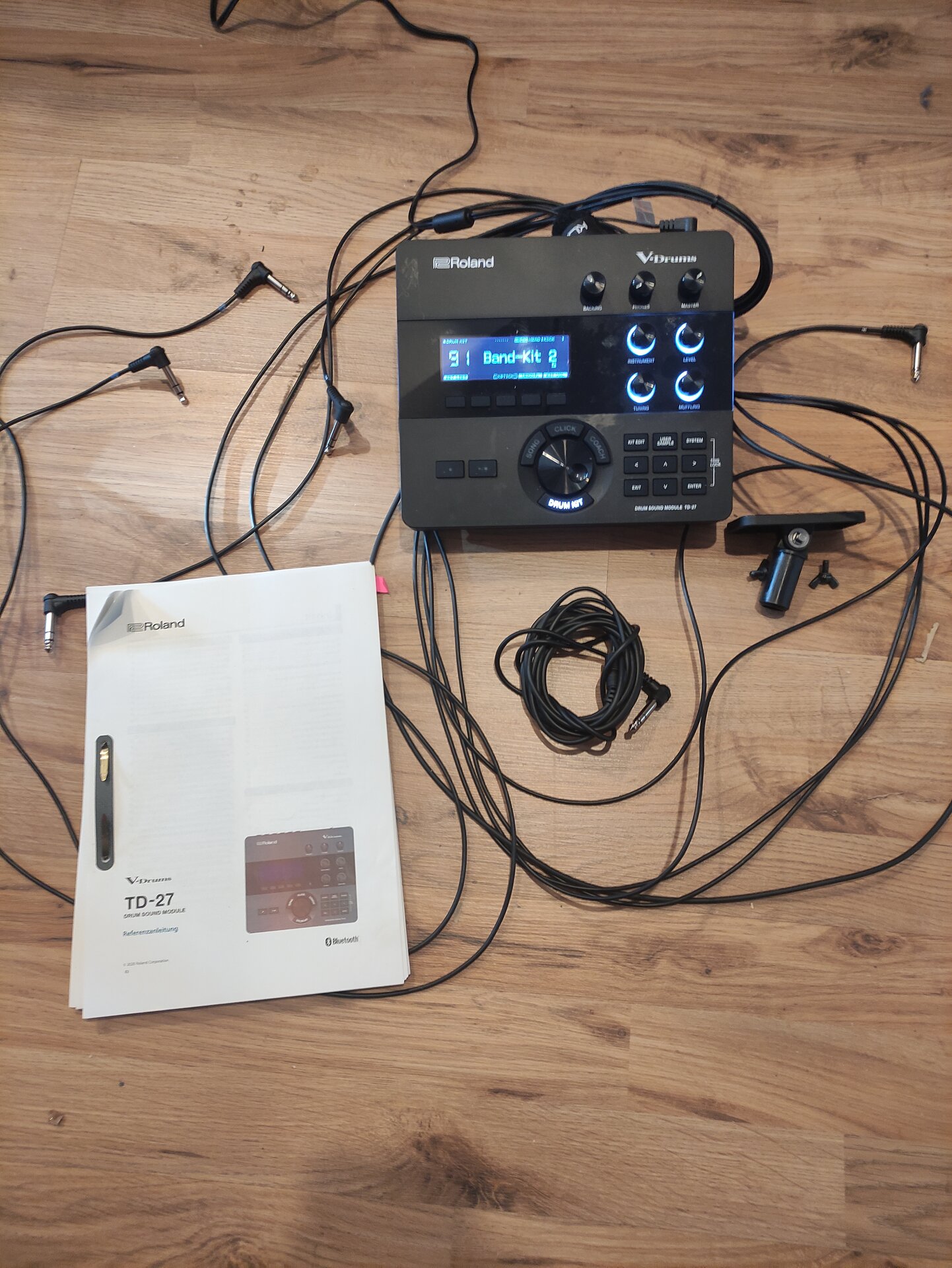 Multi-Sensor-Triggering möglich wird. Über eine optionale SD Karte lassen sich bis zu 500 eigene WAV Samples (24 Minuten Mono/12 Minuten Stereo) in das Modul laden. Wie auch beim TD-17, ist im Roland TD-27 Modul eine