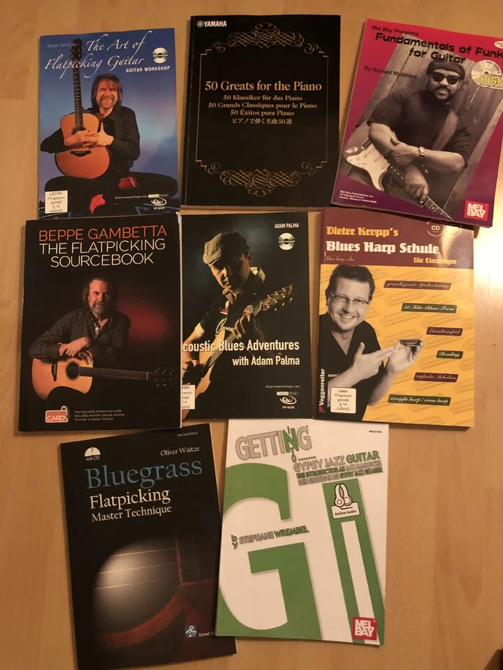 Ich habe meine Gitarrennoten und -bücher ausgemistet und verkaufe einiges davon. Der Zustand ist meistens mindestens gut aber meistens eher so gut wie neu. Teilweise habe ich die Noten nie genutzt. Am liebsten würde ich natürlich alle auf einmal verkaufen. Da können wir auch gerne über einen angemessen Preis verhandeln