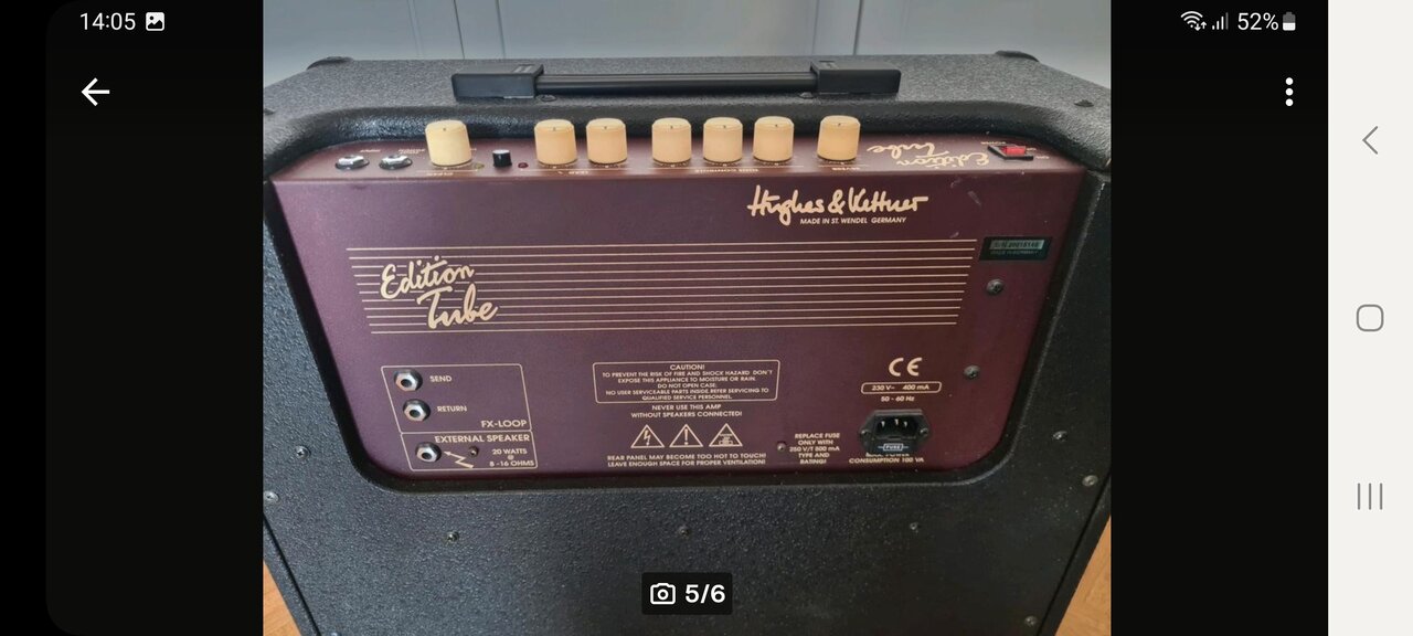 Ich verkaufe meinen Gitarrenverstärker Edition Tube von Hughes Kettner (s. Anhang). Er ist in neuwertigem Zustand, da er fast nie benutzt wurde. Anleitung und Stromkabel inklusive. Es handelt sich um einen rauch- und tierfreien Haushalt.