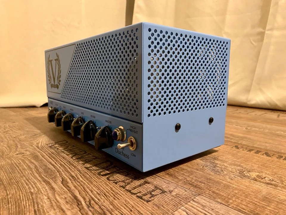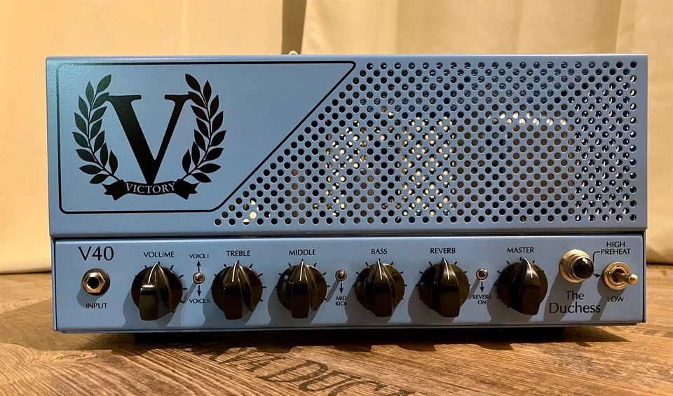 Ich verkaufe, aus meiner Amp-Sammlung, meinen nur zu Hause ( nicht Raucher, keine Tiere Haushalt) genutzten Victory V40 The Duchess in der Sonderfarbe Baby Blau Gitarrenverstärker.