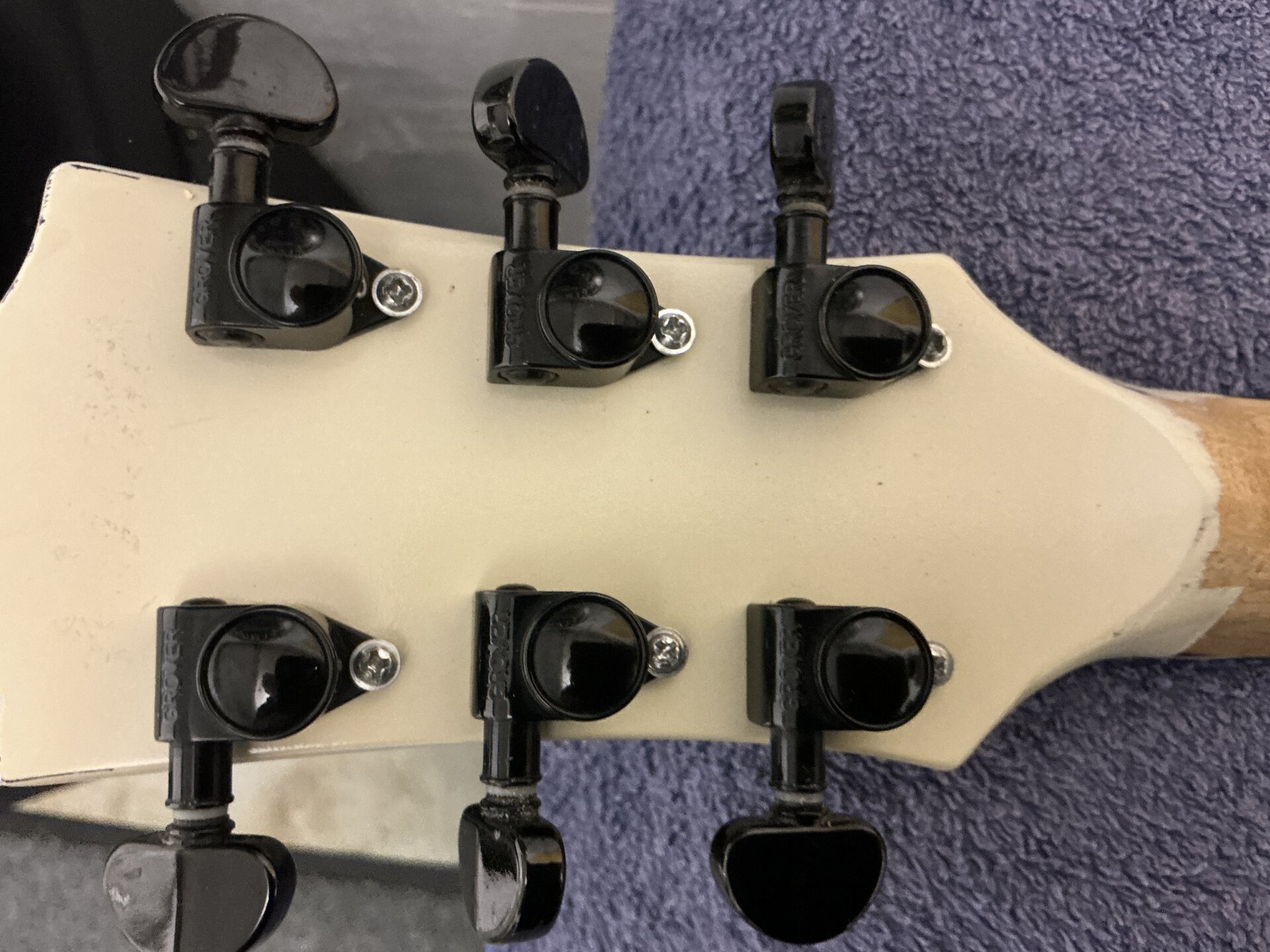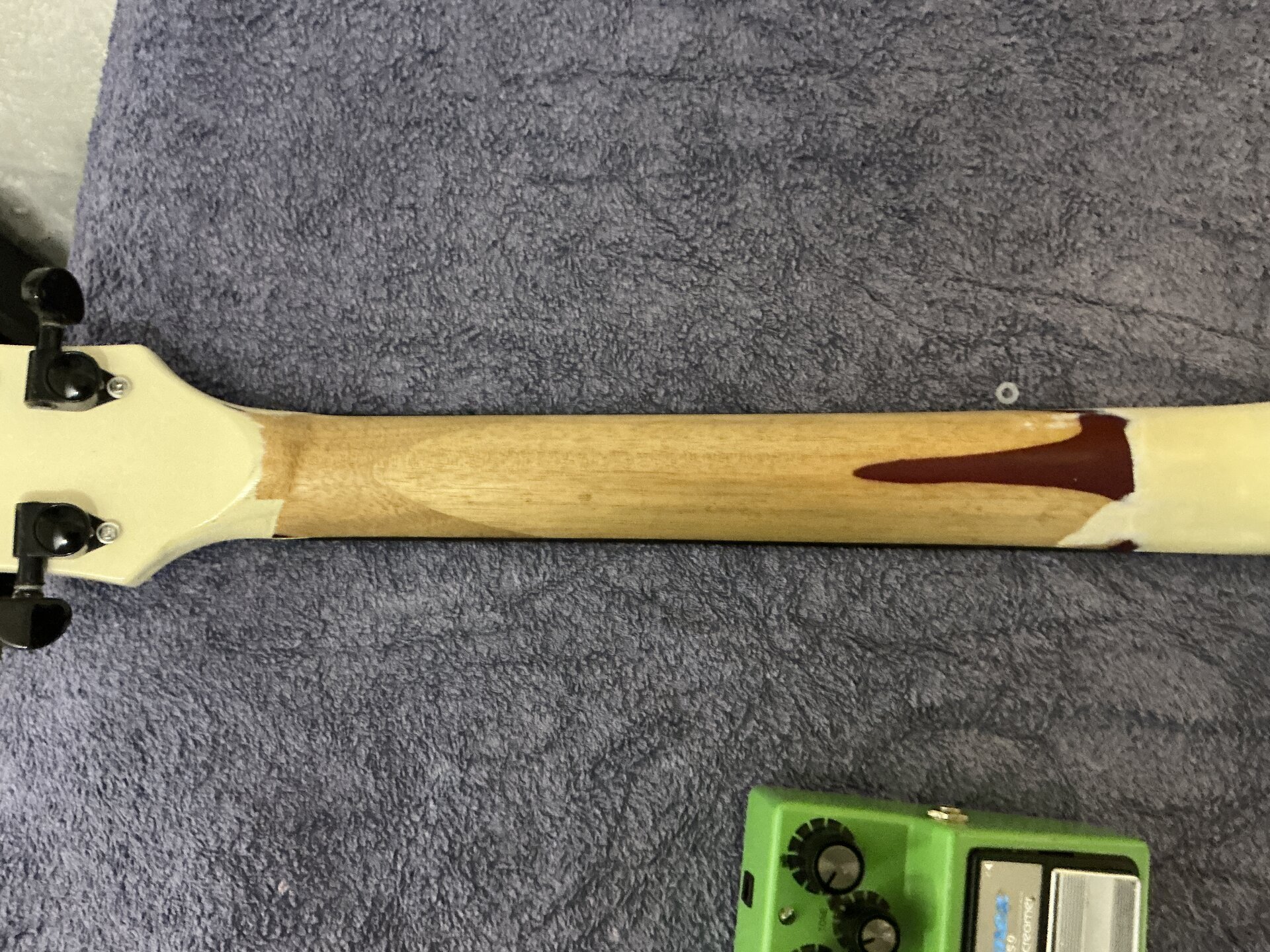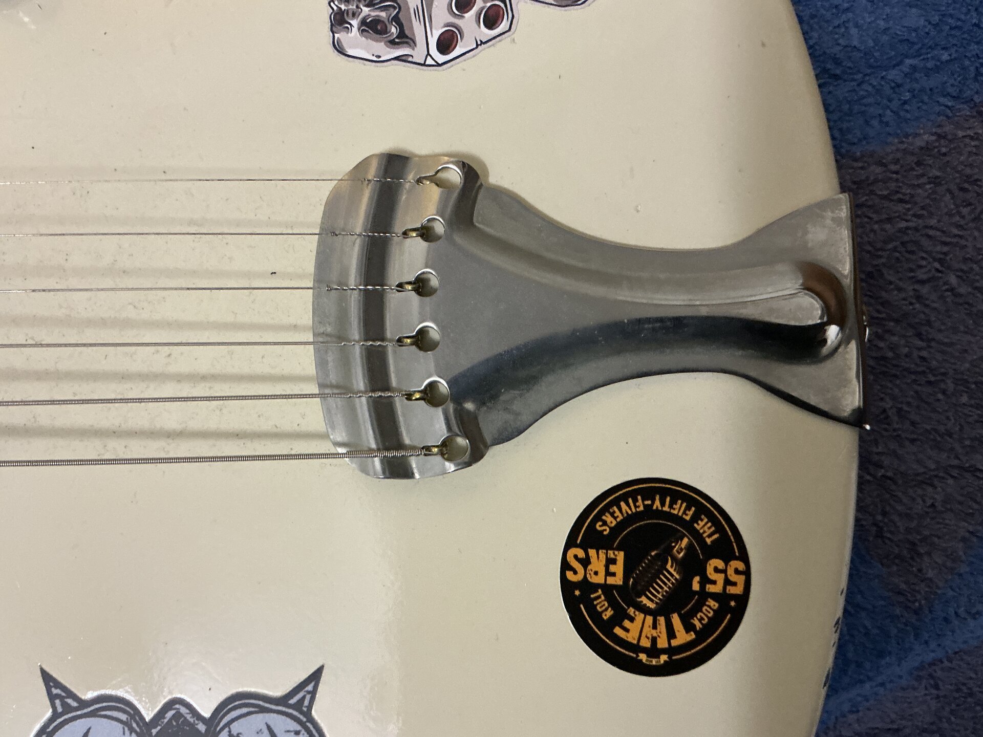 Und zu guter letzt ein Rocknrollbrett mit Mojo P90 Tonabnehmer,Killswitch,Webersattel und Nylonreiter in TV Yellow Roadworn,ein absolutes Unikat/Eigenbau,super Saitenlage,langes Sustain und fetter Sound.