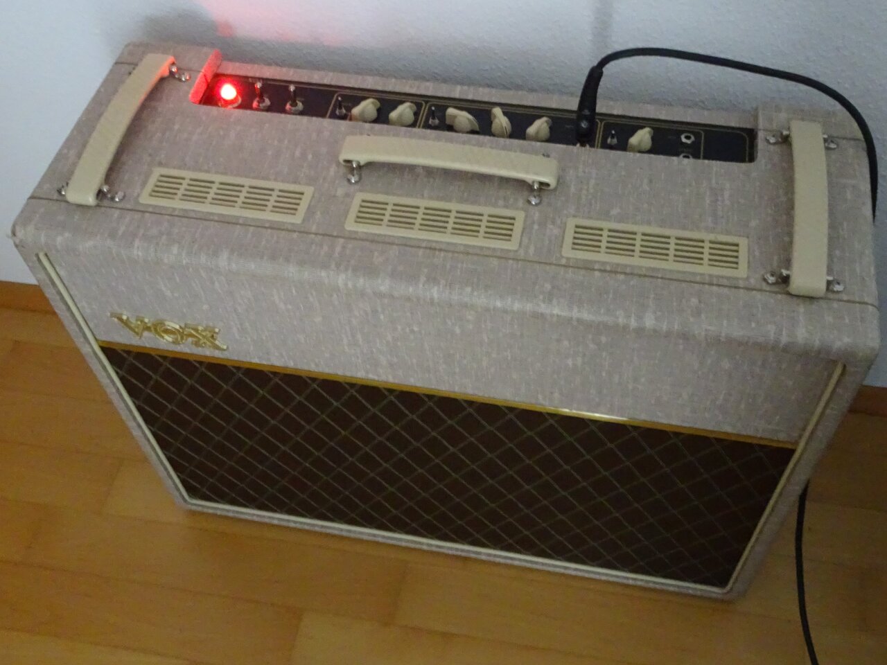 hier verkaufe ich meinen Point to Point handverdrahteten VOX AC30 Röhrenverstärker mit 2X12 Celestion Greenback