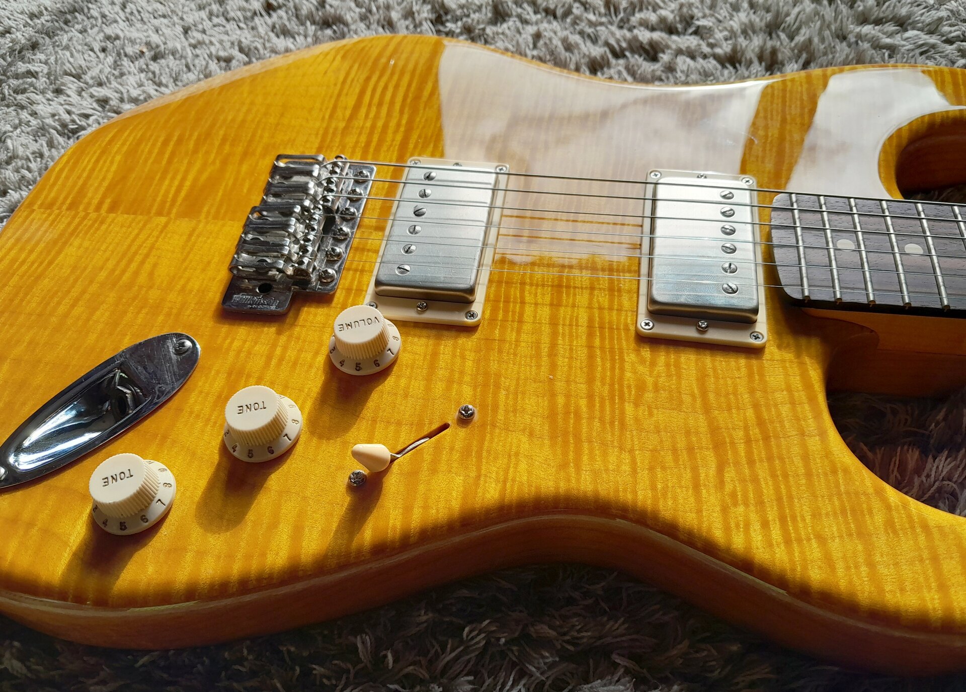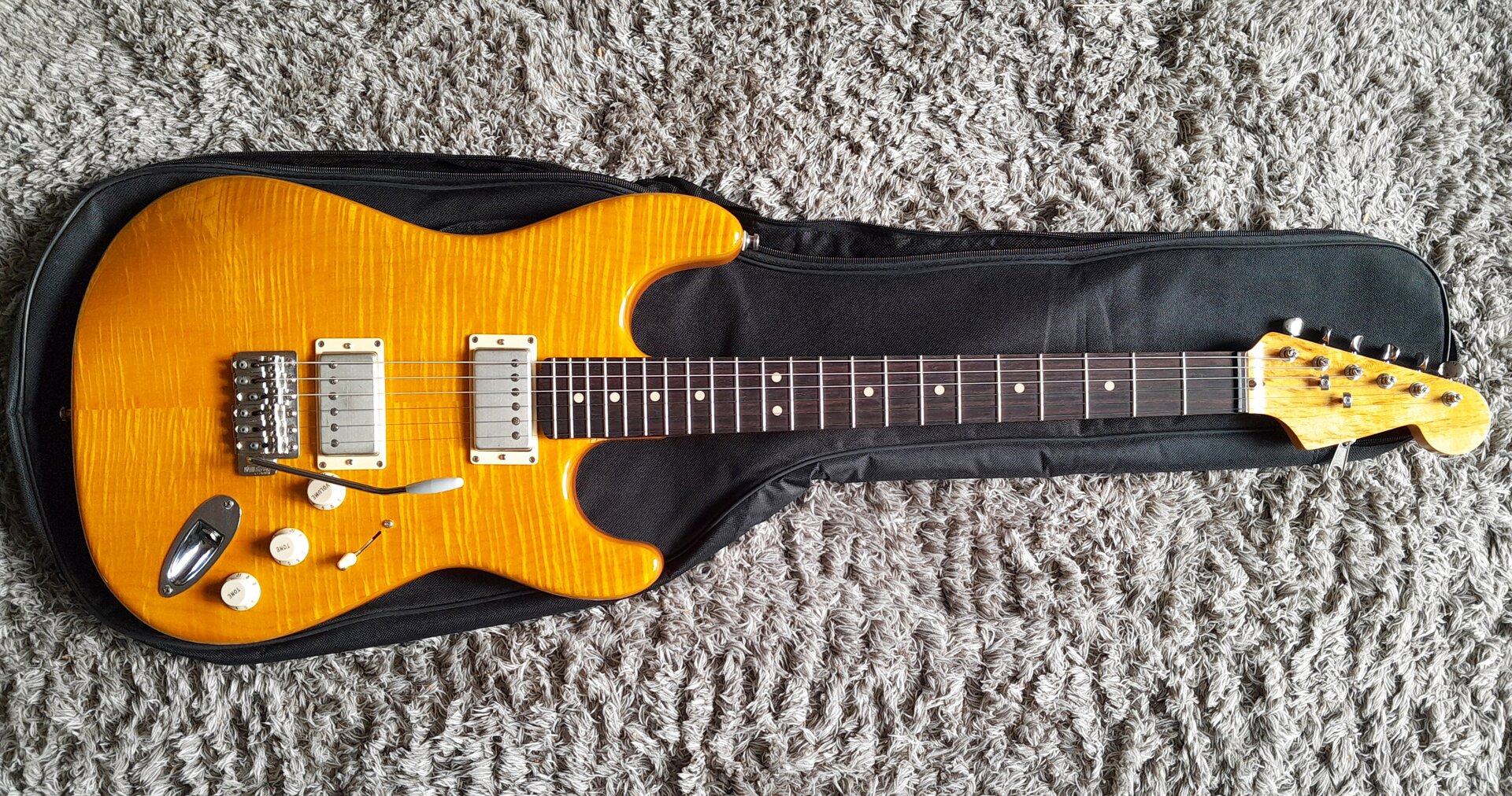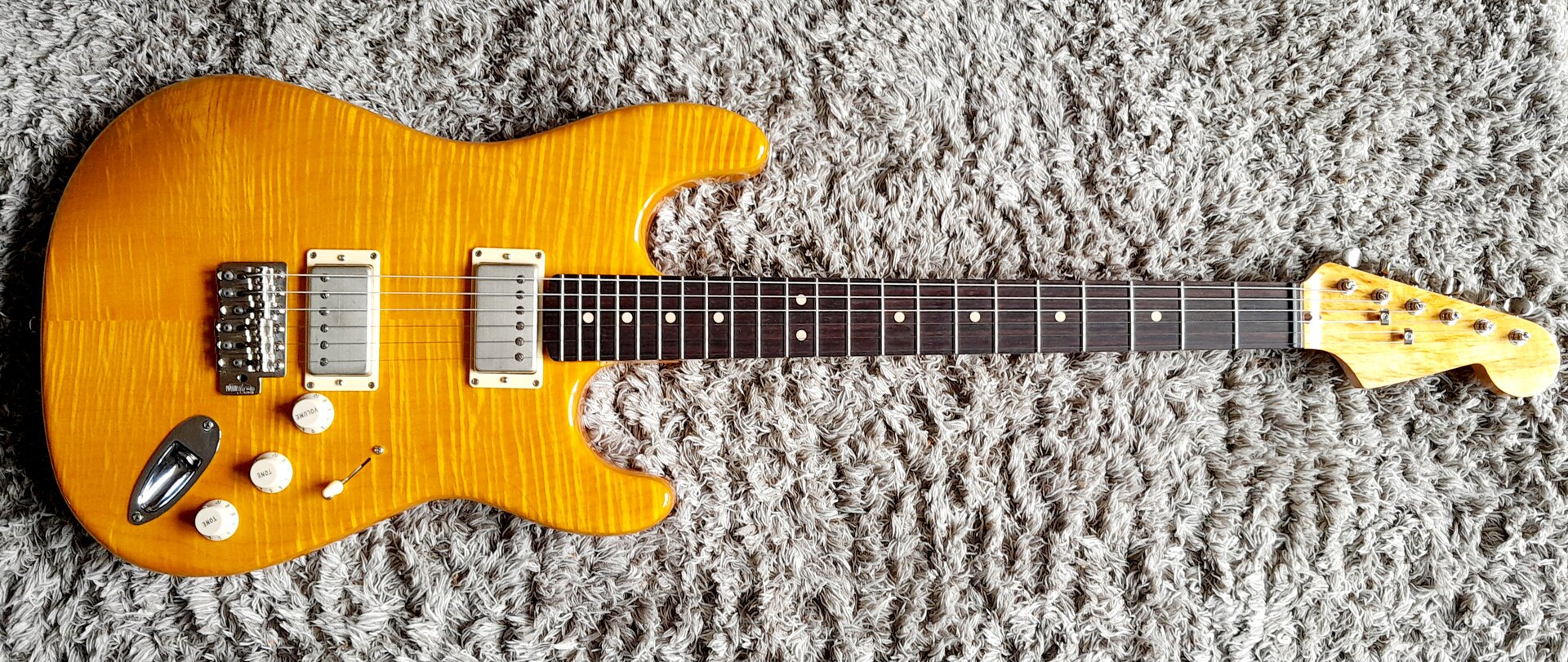 (Warum so teuer? Aufpreis für bestimmte Erle, Aufpreis für "unique choice"-Option der AAA-Flame, für Beizen von Hand, für den geilen Hals, Shipping und Zoll, 2x Königsklasse-Pickups, Gotoh-Hardware…. )