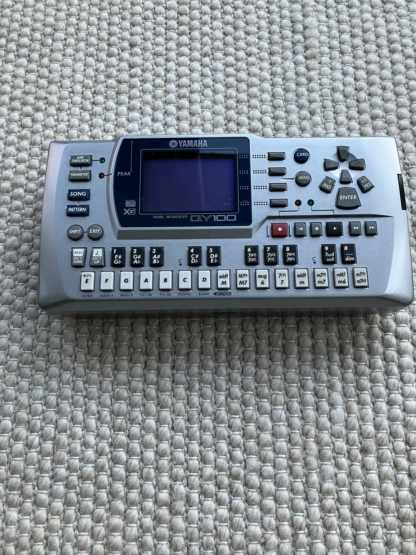 Verkaufe ein gebrauchtes QY100 von YAMAHA. Das Gerät ist technisch und optisch in einem einwandfreien Zustand. Dazu gibt es ein Netzteil, Dokumentationen (Papierform), einen DATA-Filer (auf CD) und ein Plastikcase, in dem ich es immer transportiert habe. Das Gerät ist schon in die Jahre gekommen, hat aber immer noch eine ganz passable Klangerzeugung (GeneralMidi und XG-Standard). Ich habe es zum abspielen von MIDI-Files benutz, eine passende Speicherkarte SmartMedia 32 MB) ist zusätzlich im Gerät.
