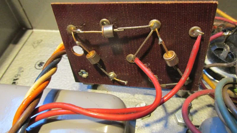 Ach so, am Gleichrichter fehlt eine Diode, hat aber funktioniert,