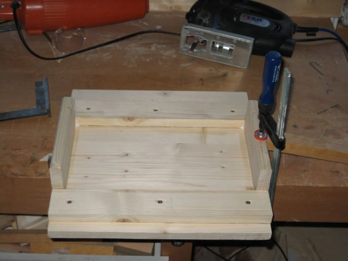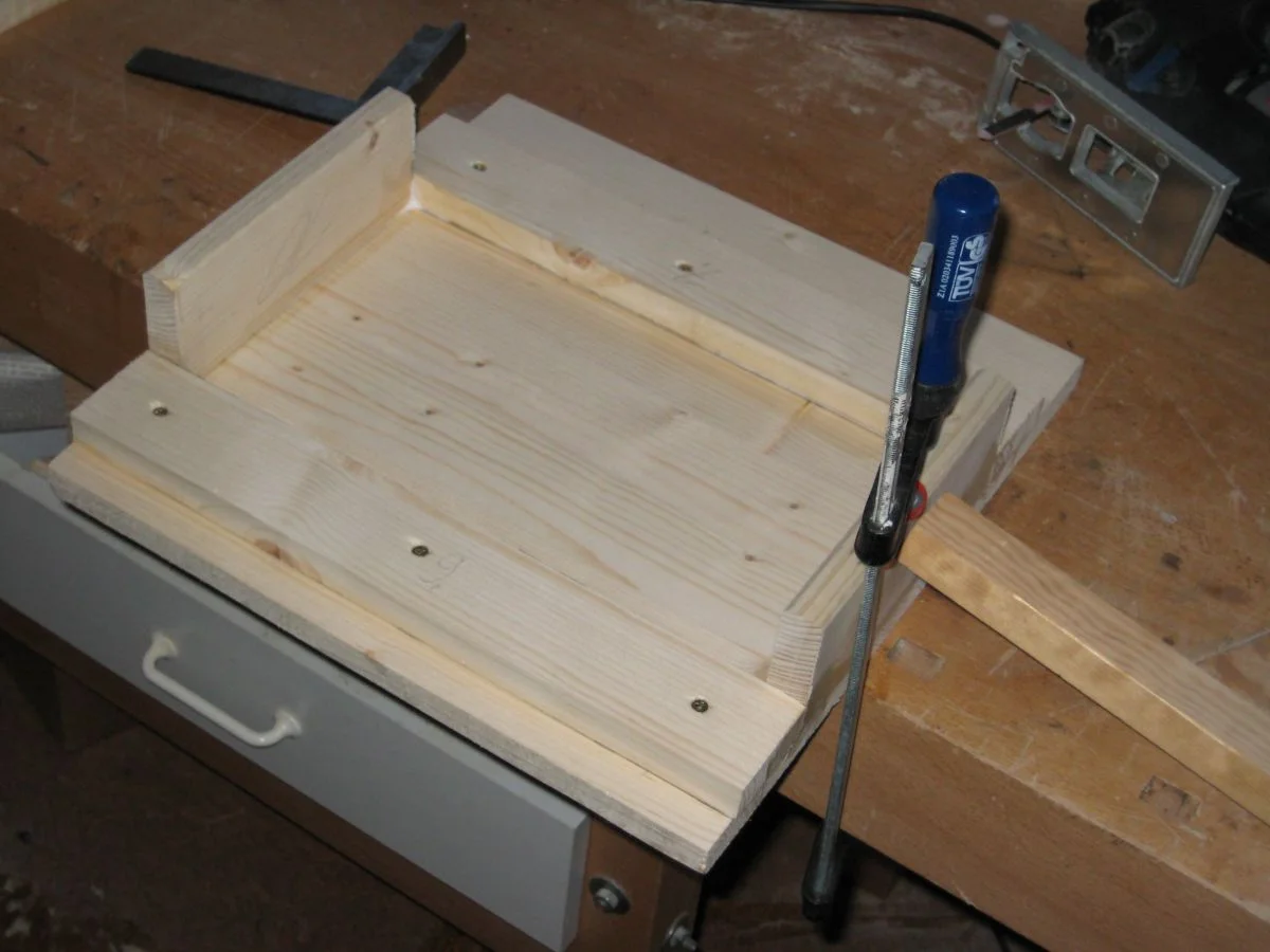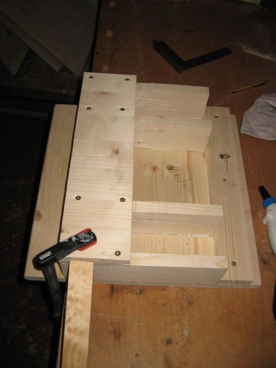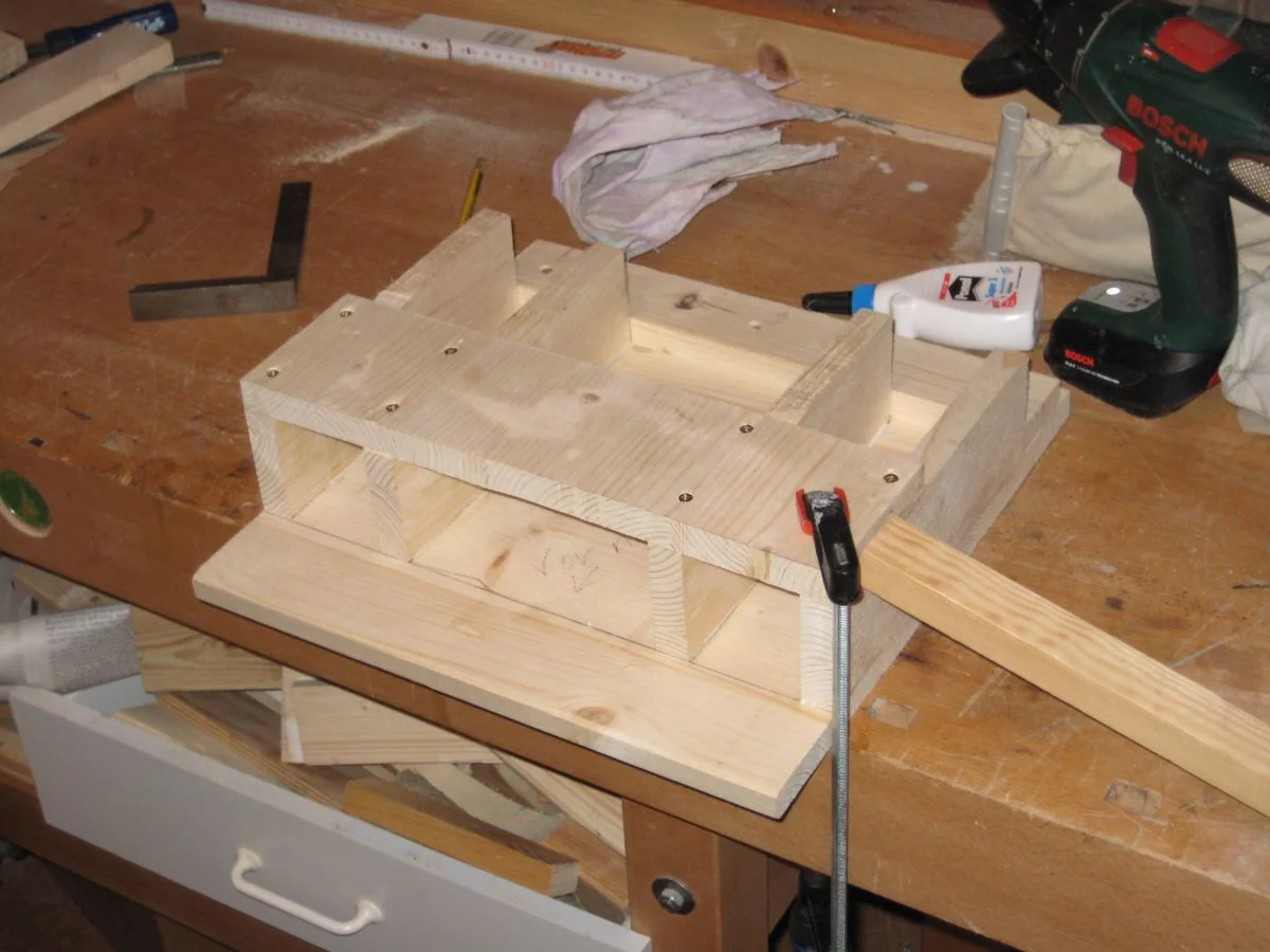 ). Ich entschied mich dann für stinknormales Leimholz. Aufgrund dessen, dass die Box (verglichen mit einer 4x12") recht klein ist machte ich mir um Schwingungen, mit welchen das Multiplex besser klar kommen sollte, keinerlei Gedanken (was sich übrigens bestätigt hat). Auch bei den Verbindungen, wo mir den meisten Leute zu Lamello bzw Dübel rieten, bevorzugte ich die Postkoservative Methode der Spax-Schrauben in Verbindung mit Leim, allerdings schon mit vorbohren