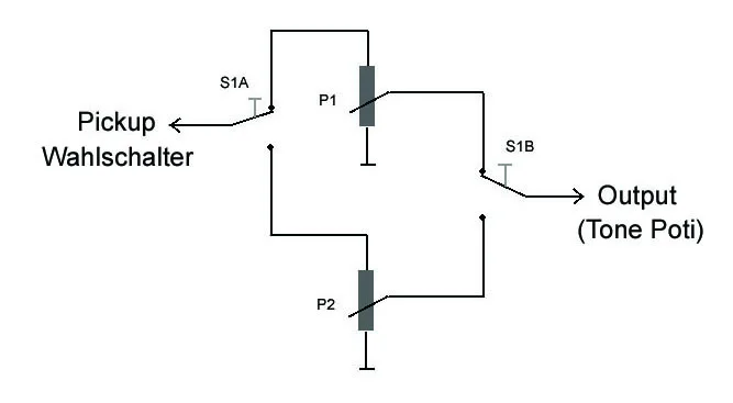 ich möchte bei einer gitarre die pickups mit 2 volumepotis ansteuern! schwer zu erklären aber naja..🙄
