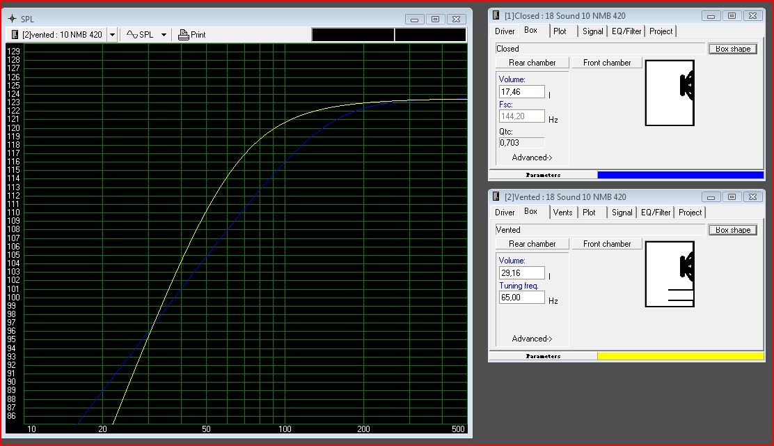 @scarber: du hast die 2x10" kiste doch durchgerechnet. gibts denn diagramme zu dem ding? diese sollten die grundlage für die festlegung der großen kiste sein. dabei sind alle variablen der zweiten box offen. unsere hinweise zu evtl. geeigneten töpfen müsstest du aus diesem grund eigentlich alle in die tonne treten, weil wir die daten der kleinen box nicht kennen.