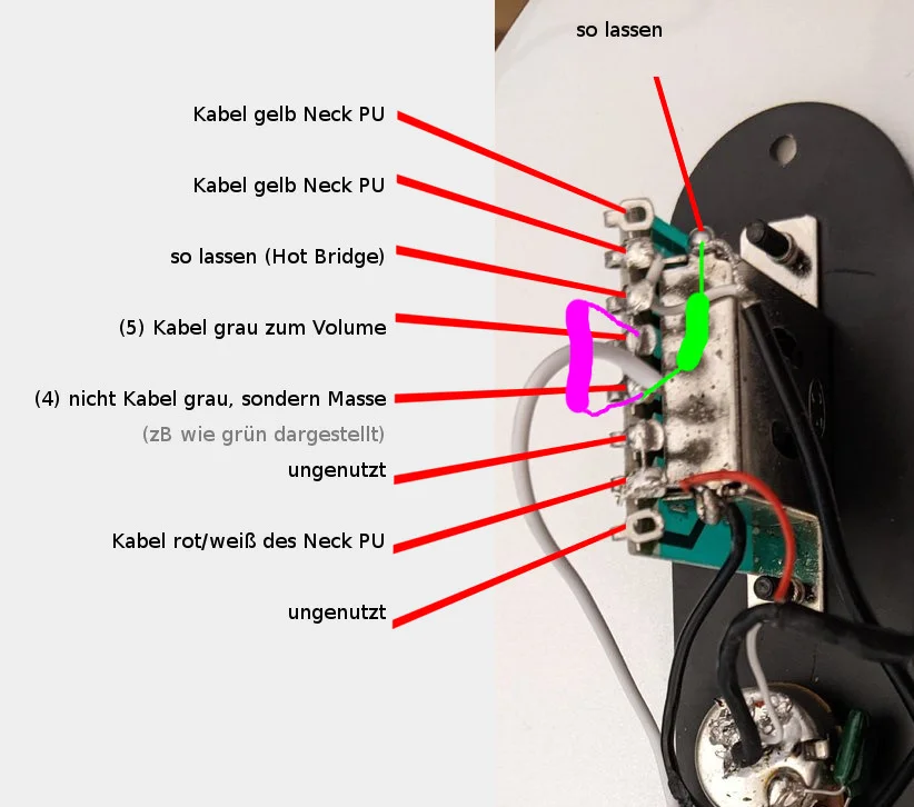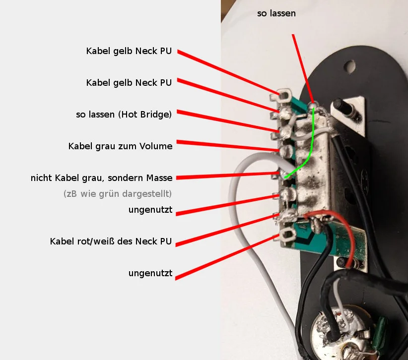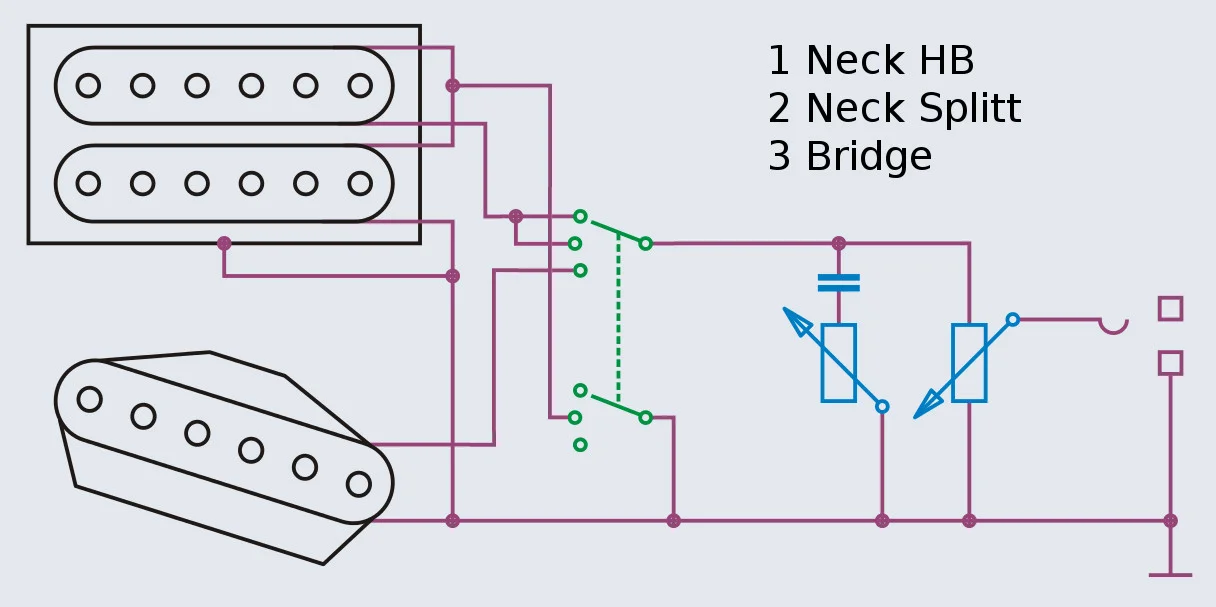Da ich die Mittelposition nie nutze Frage ich mich ob es möglich ist dort den Neck PU gesplittet zu spielen. Und wenn ja, wie?