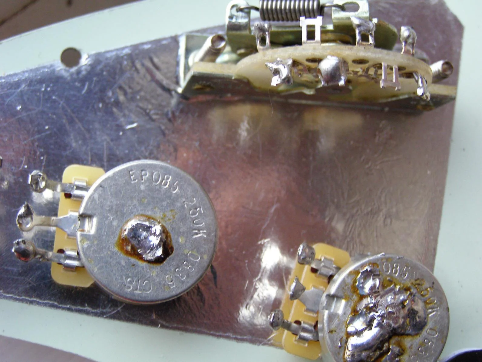 ich habe gerade einen 3-Way switch und CTS Potis auf ein Pickguard geschraubt.