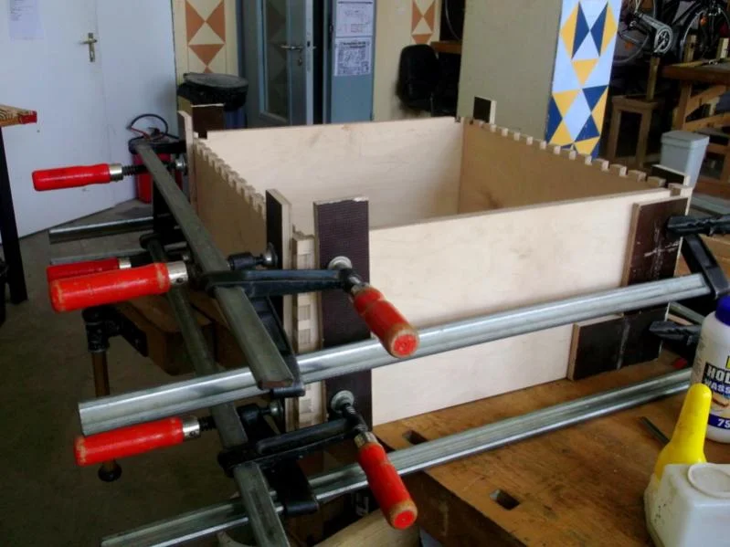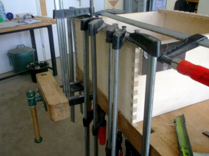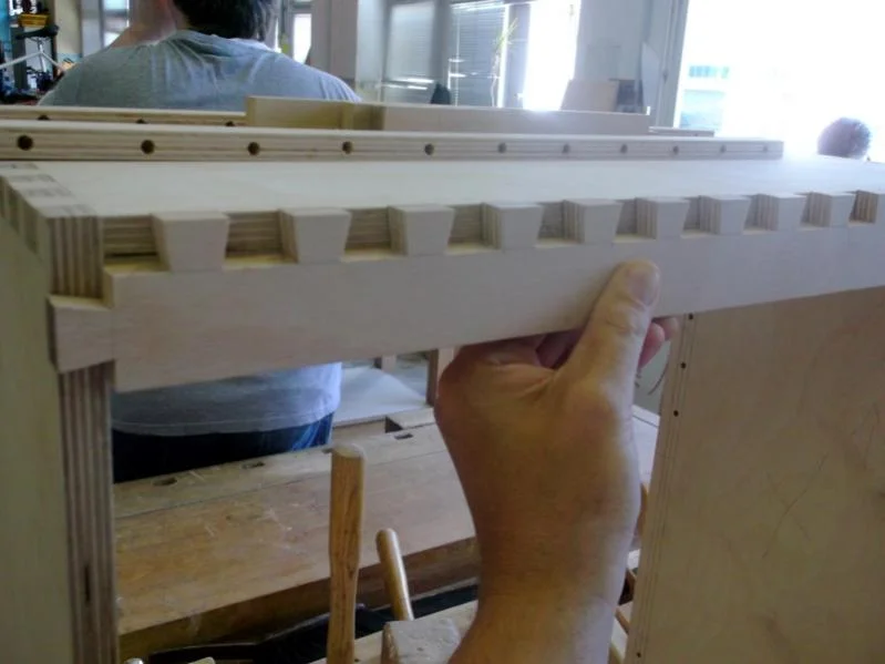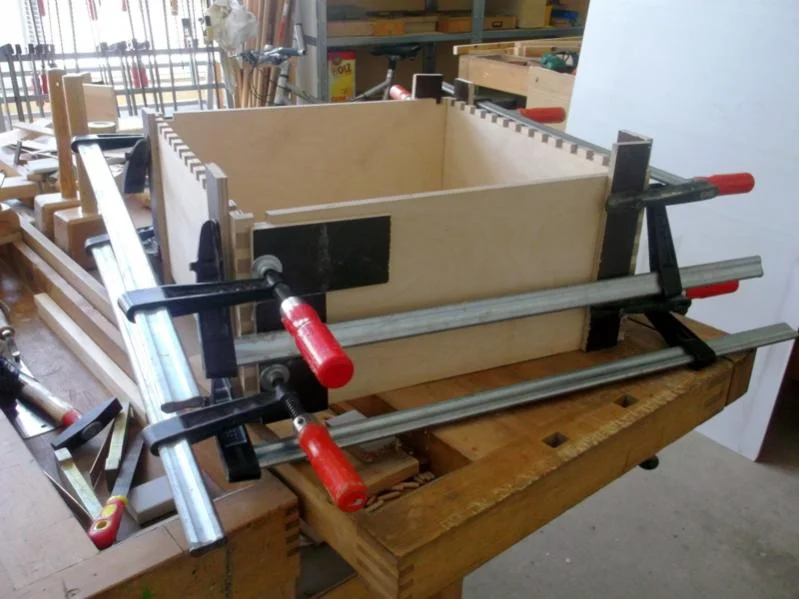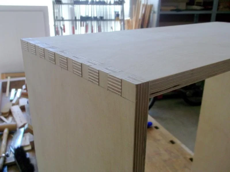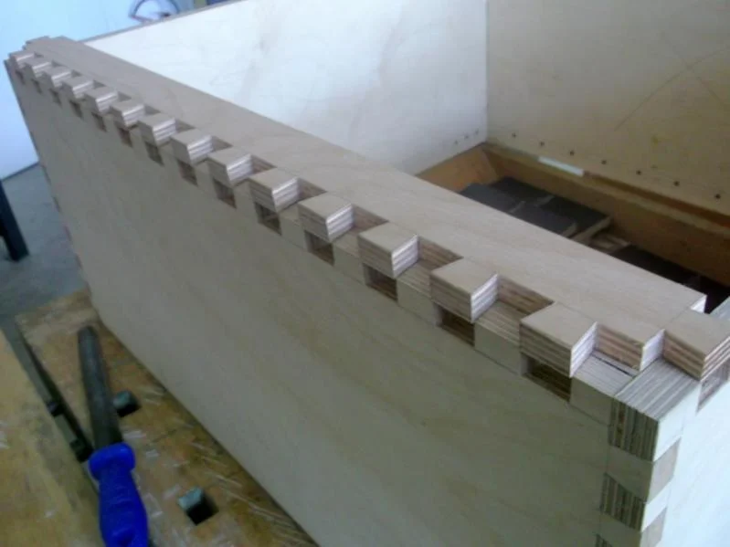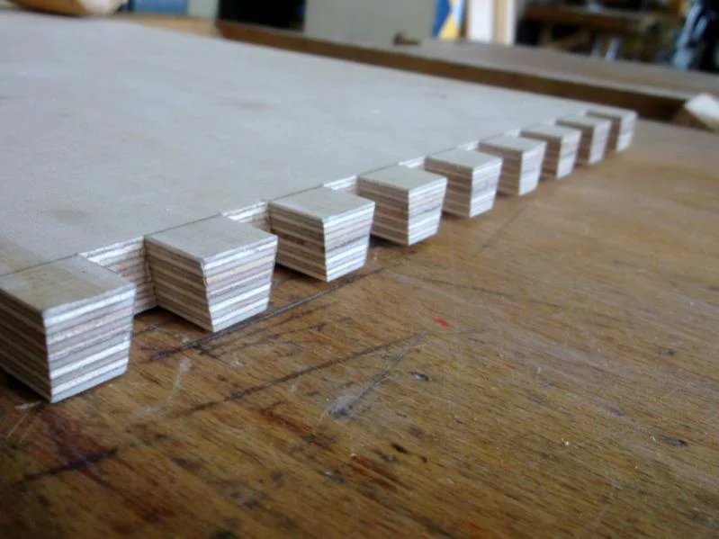 Da auf Arbeit gerade wenig zu tun ist, habe ich mich mal an den überfälligen Bau eines Fender Style Cabs mit 410er gemacht. Das läuft so nebenbei, hat also keine Eile. Zudem wird das Gehäuse eh komplett Schwalbenschwanz verzinkt (Front- und Backbaffle fingergezinkt).
