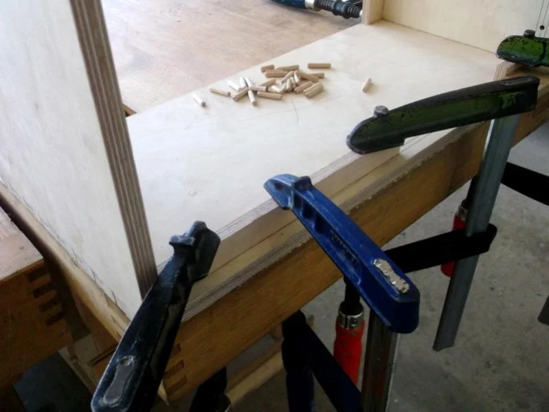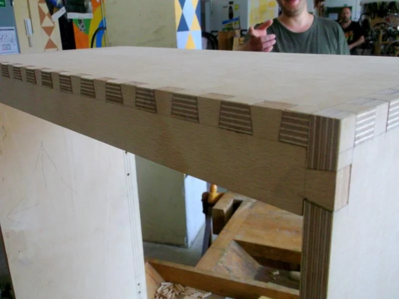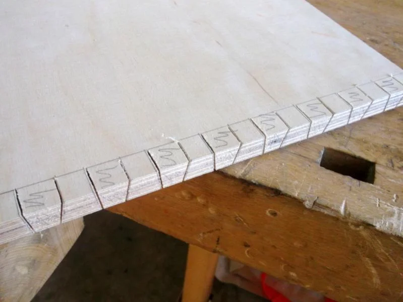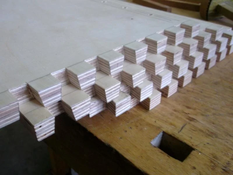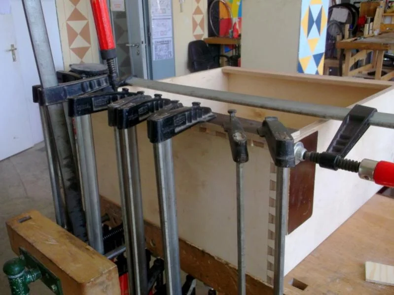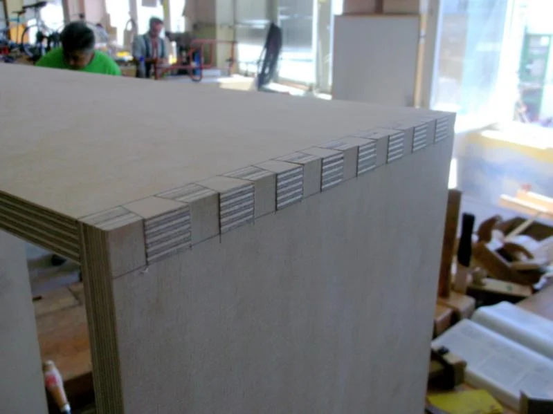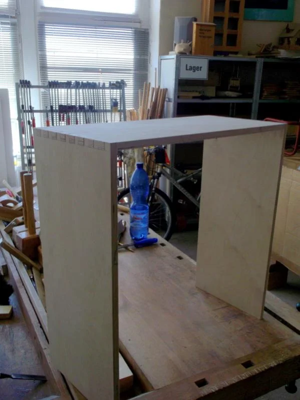 Da auf Arbeit gerade wenig zu tun ist, habe ich mich mal an den überfälligen Bau eines Fender Style Cabs mit 410er gemacht. Das läuft so nebenbei, hat also keine Eile. Zudem wird das Gehäuse eh komplett Schwalbenschwanz verzinkt (Front- und Backbaffle fingergezinkt).