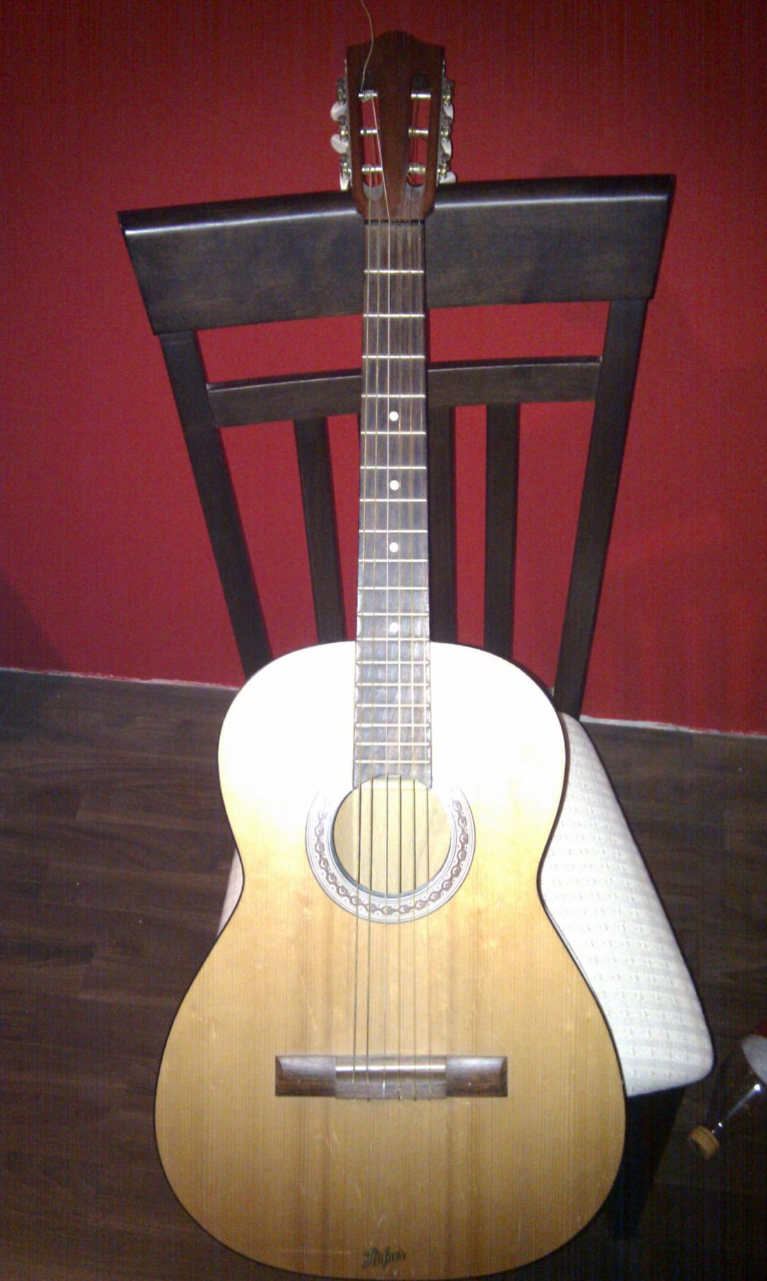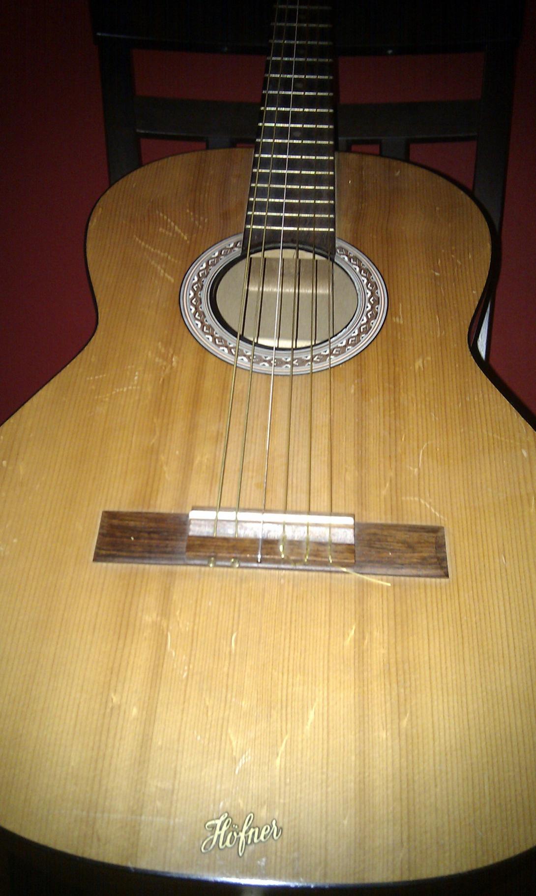 eine alte Gitarre gegeben, die bei denen seit Jahren unbenutzt rumstand.