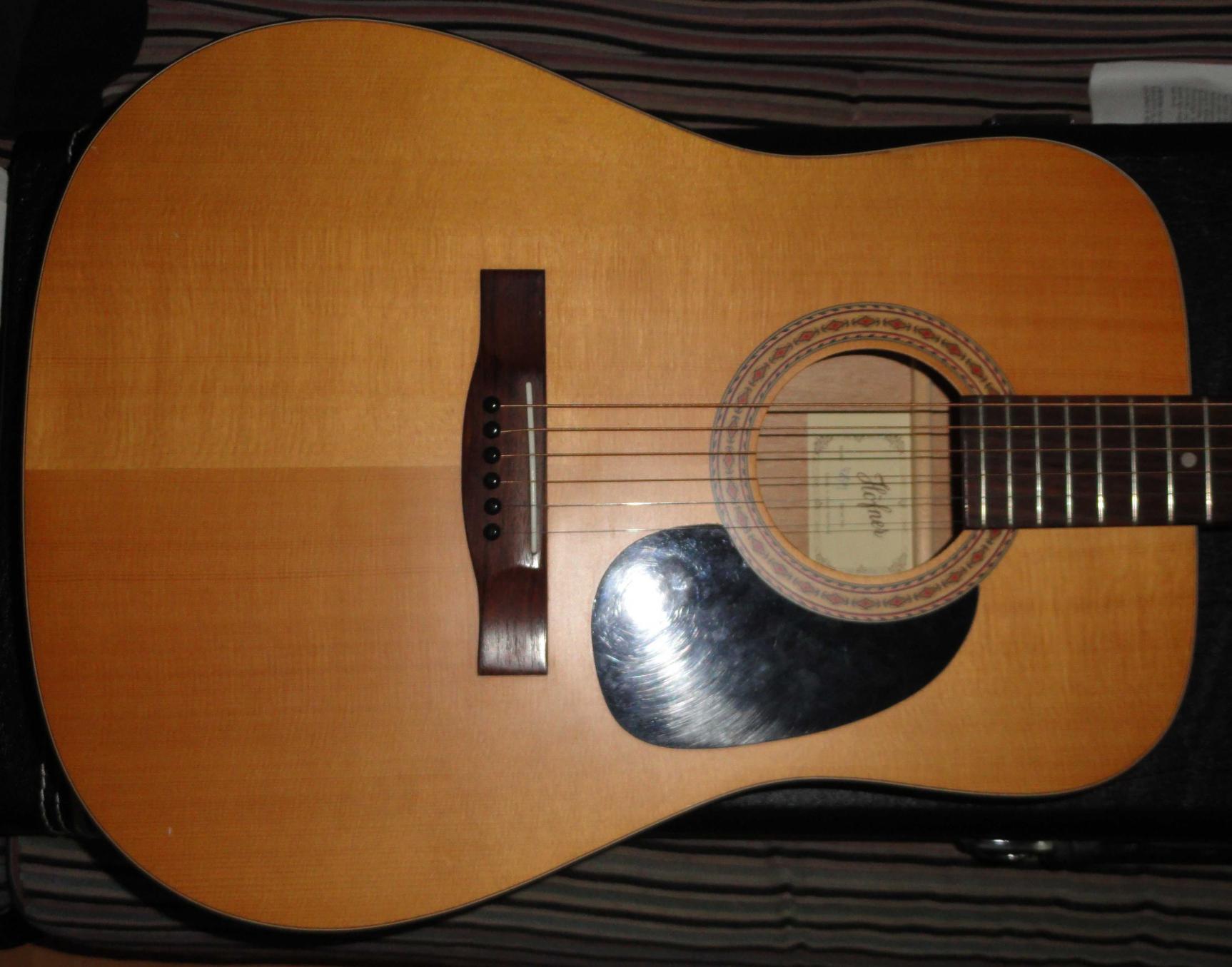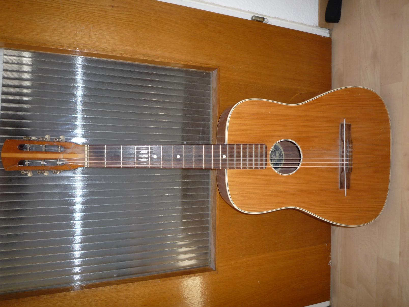 kann mir jemand etwas zu der Gitarre sagen? Das ungewöhnliche an ihr: Sie hat Nylon-Saiten, obwohl sie von der Form doch eher eine Western-Gitarre zu sein scheint. Hat sich da jemand mal dran vergriffen? Ansonsten ist wenig zu sagen. Im Inneren steht "Hoyer - Original nur mit diesem Zeichen - Made in Germany". Sie dürfte shcon etwas älter sein, hat Zahlreiche natürliche Lackrisse.