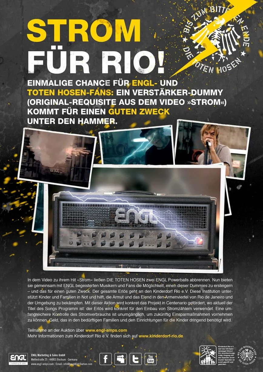 Die Toten Hosen sind ja bekannt für überraschende Aktionen. Die Versteigerung eines beim Video-Dreh zu ihrem Hit "Strom" abgefackelten Engl Powerball-Dummy geht allerdings auf den Gitarrenverstärker-Hersteller ENGL zurück und dürfte auch die Leser des Musiker-Board interessieren.